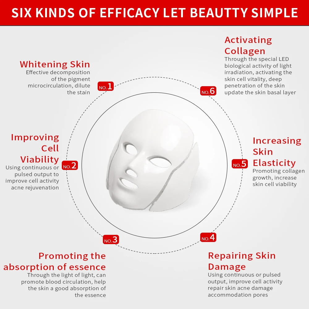 Светильник 7 цветов, светодиодная маска для лица, фотонная терапия, маска для красоты лица, машина против акне, морщин, отбеливание, удаление пятен, инструменты для ухода за кожей