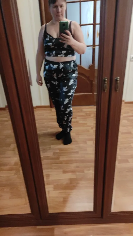 Пижама пришла быстро. Соответствует описанию. Размер xs подошёл на параметры: рост 147, талия 58, грудь 70, бедра 74 Резинка на штанах не давит. Но штаны длинные на мой рост, буду укорачивать