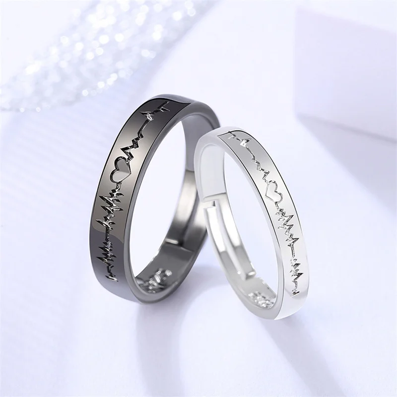 Номер моделиNew Simple Couple Ring Engraved Black And White ECG Pair Ring