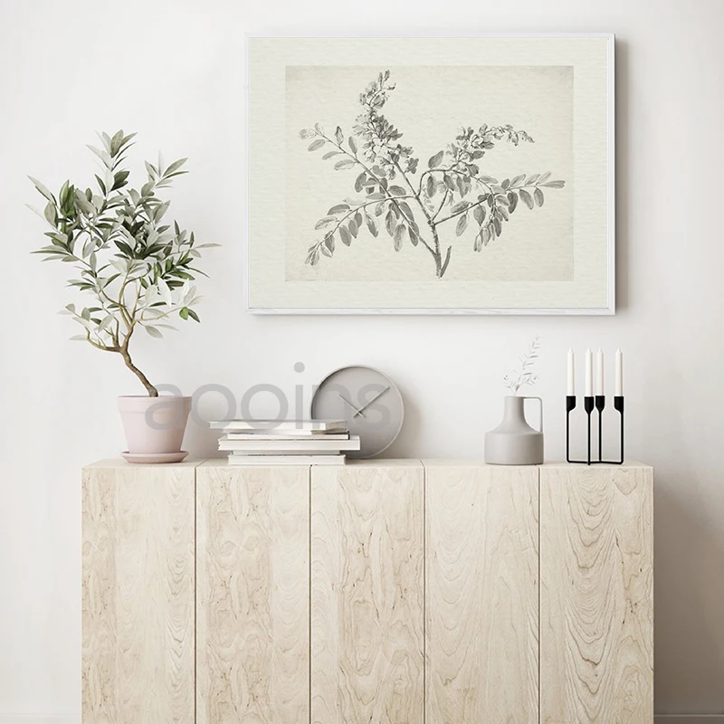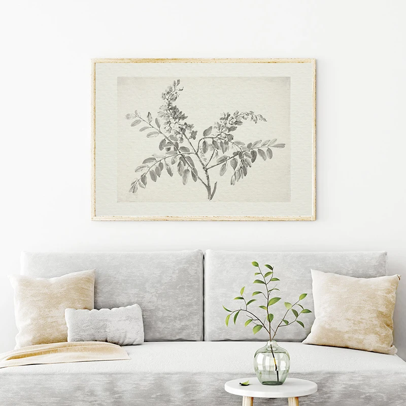 Винтажная ветка эскиз художественной живописи античный Ботанический рисунок на холсте плакат нейтральная Настенная картина фермерские художественные принты Декор