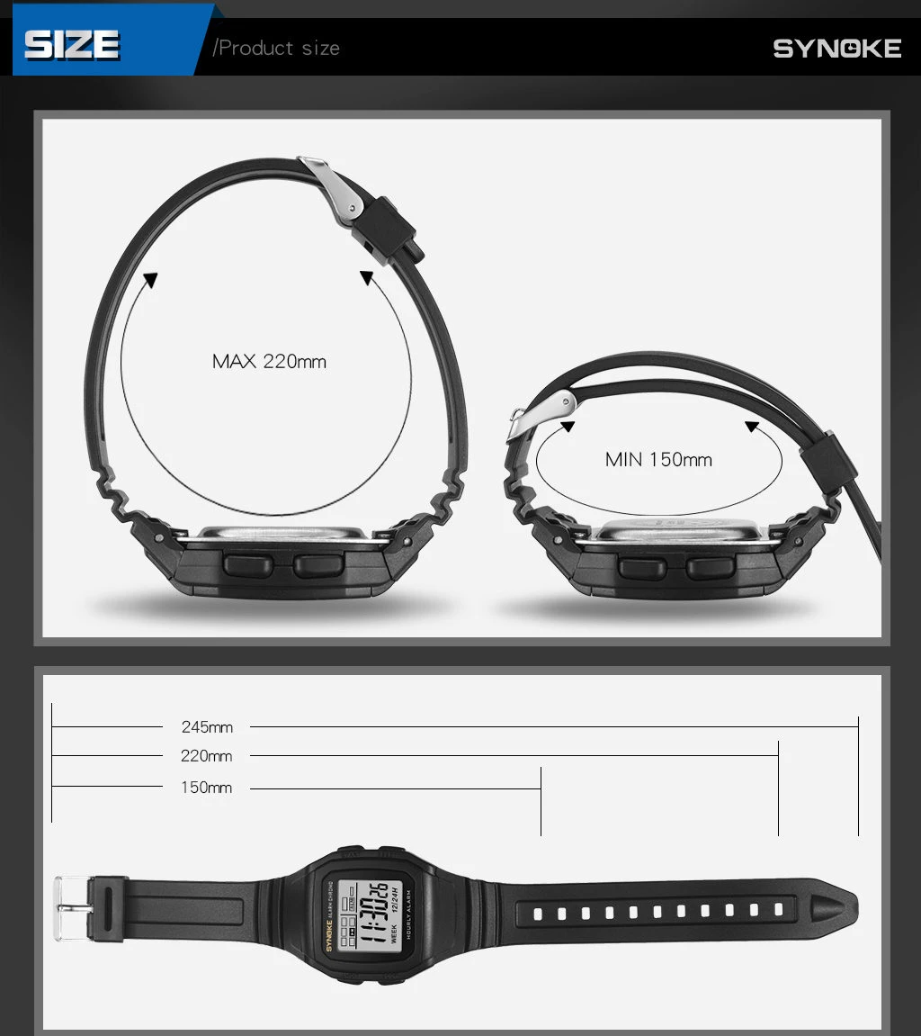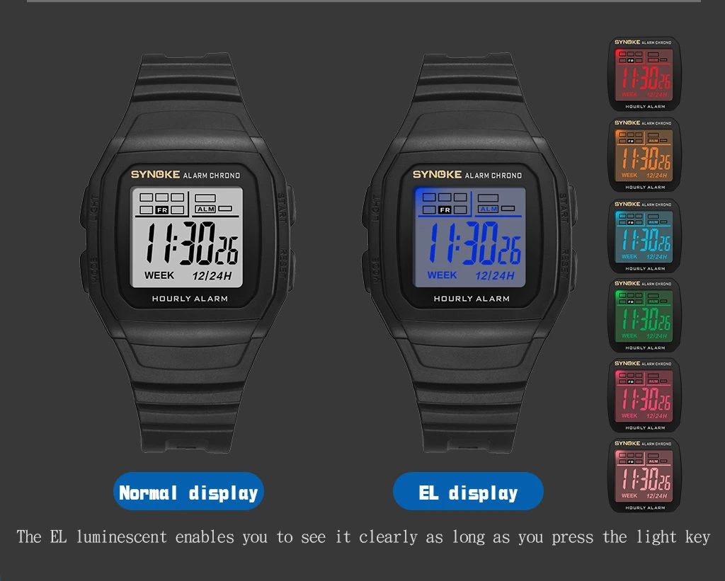 Часы наручные SYNOKE Мужские Цифровые с ЖК-дисплеем, 1224 часов
