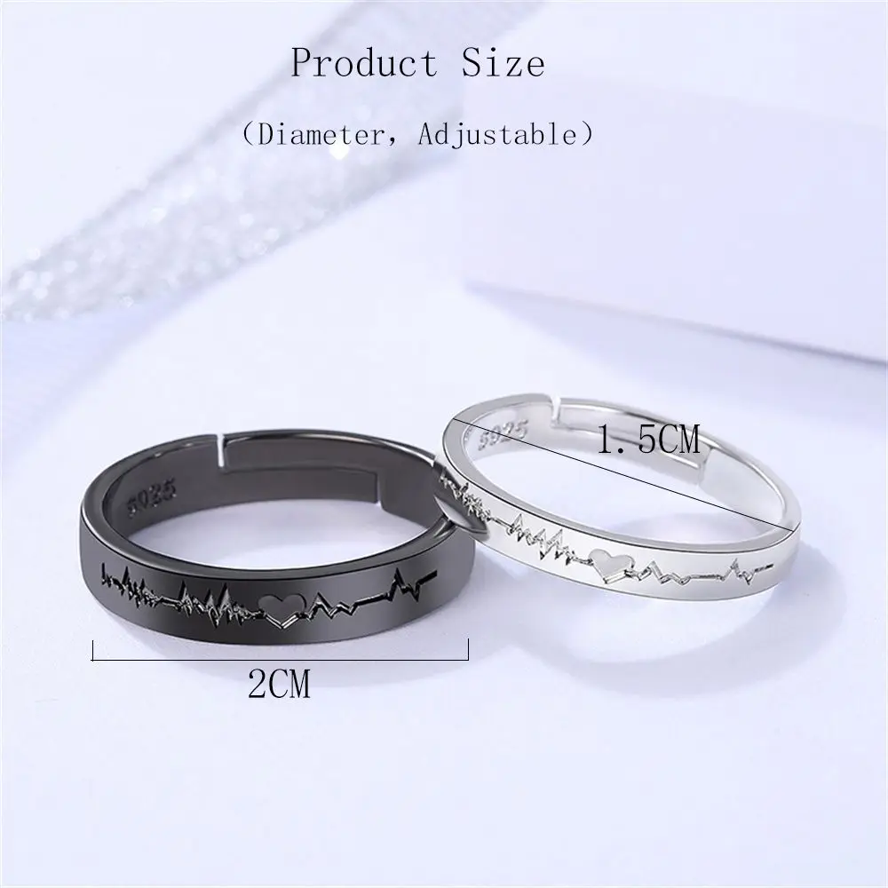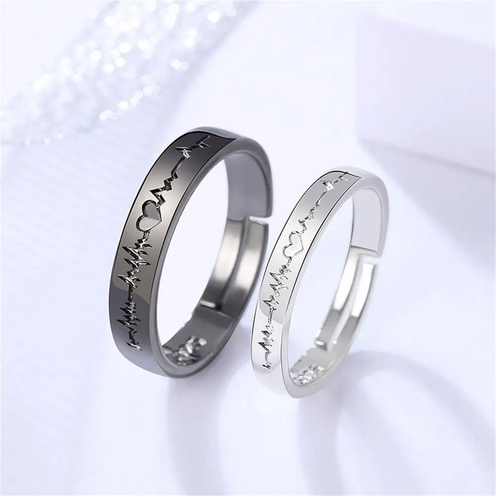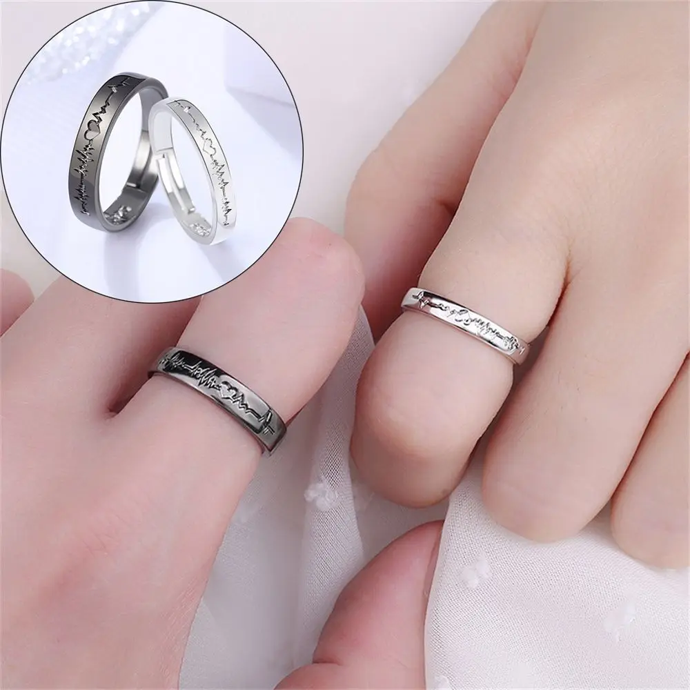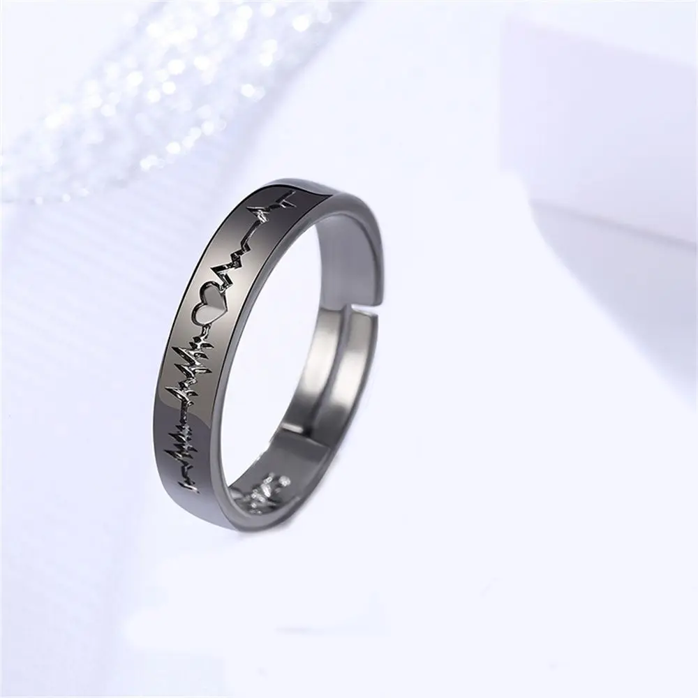 Модный подарок на день рождения, простые парные кольца в Корейском стиле, черный цвет, электрокардиограмма, День святого Валентина
