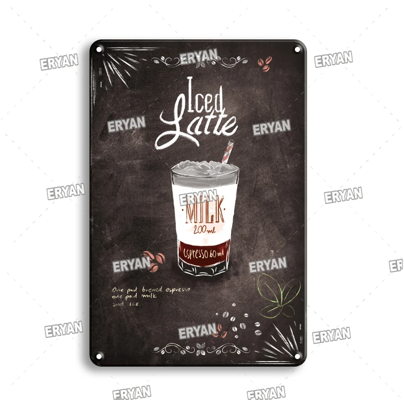 Металлическая табличка в виде меню кофе, Жестяная Табличка, ретро, ...
