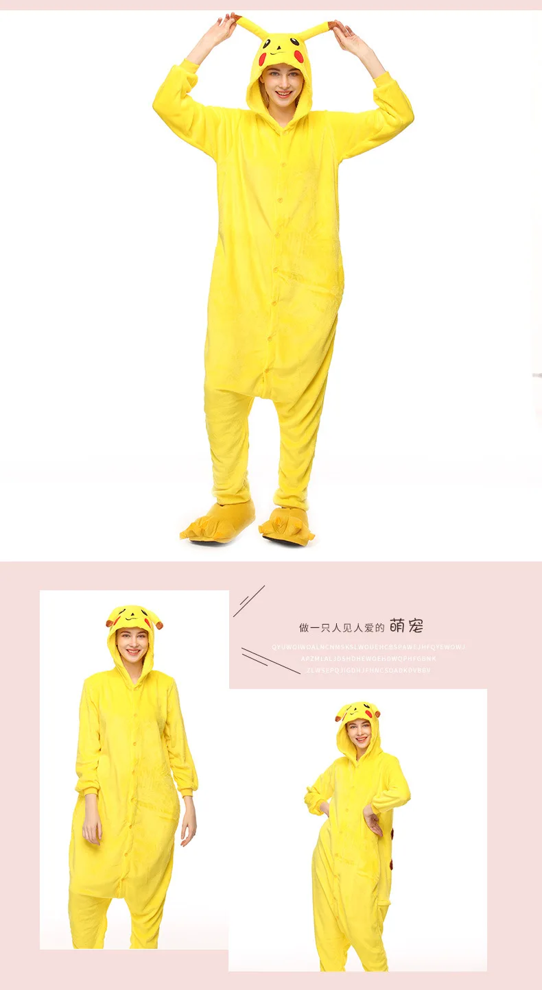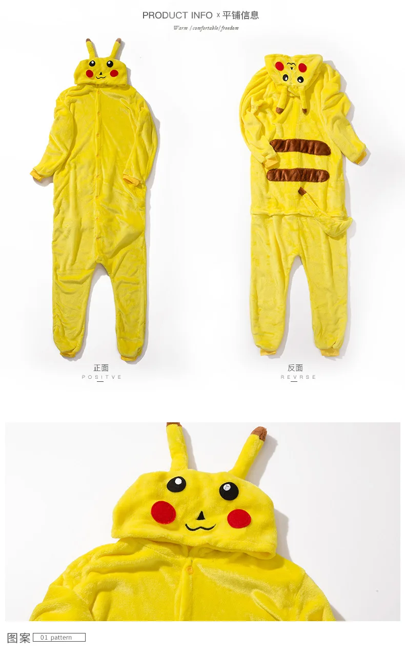 Пикачу комбинезоны с капюшоном для взрослых и детей Пижама-кигуруми...