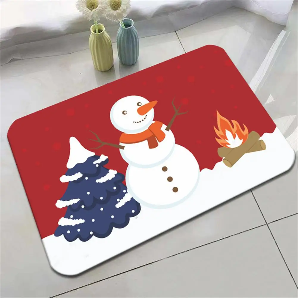 Коврик для входной двери, фланелевый Противоскользящий напольный мат с мультяшным рисунком, для украшения дома, Рождества