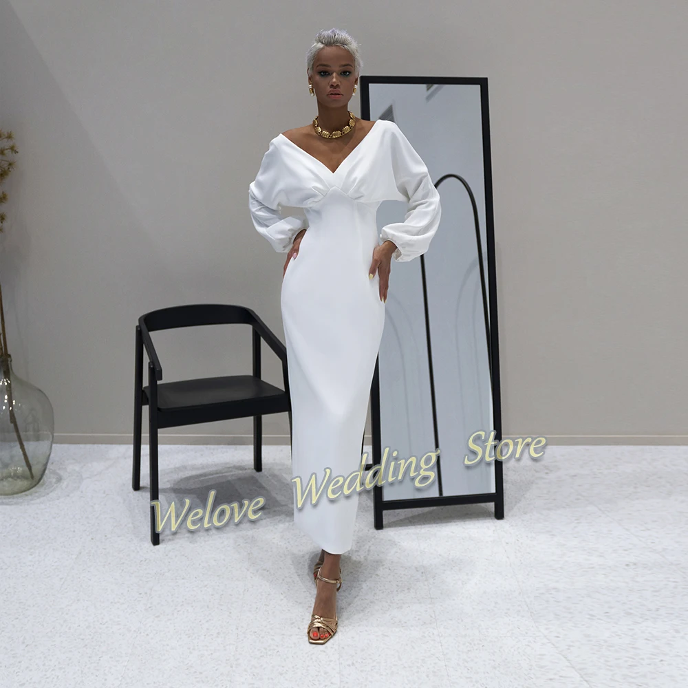 Простое белое свадебное платье с разрезом для женщин, приталенное платье с длинным рукавом и V-образным вырезом для свадьбы, Элегантное свадебное платье, новинка 2021