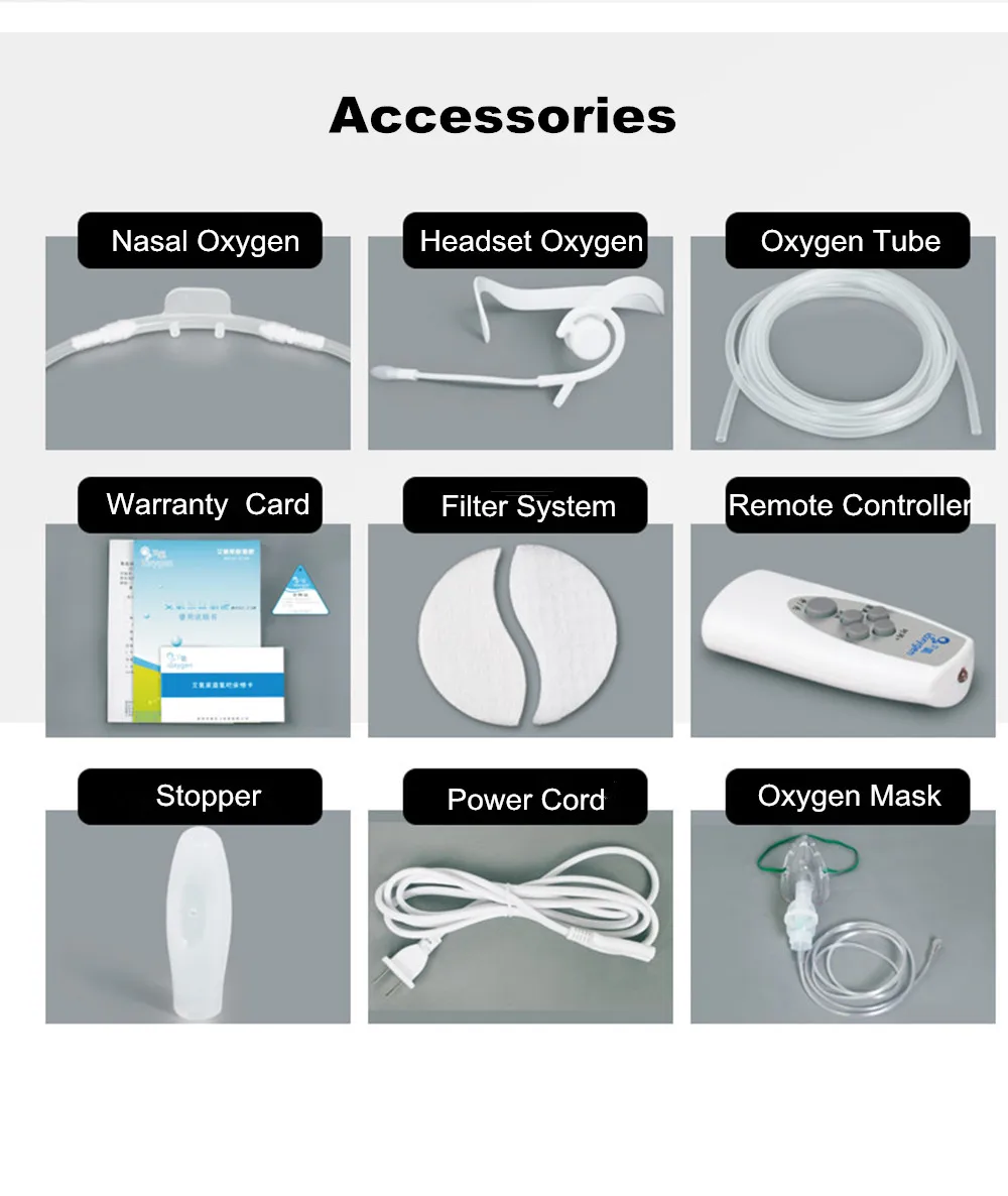 Кислородная система этого продукта имеет фильтр грубой пыли, фильтр тонкой пыли и три бактериальной фильтрации для входного воздуха соответственно, наконец, кислород свежий и чистый после фильтрации, И два передних слоя фильтра могут быть заменены, пользователь работает с ним комфортно.