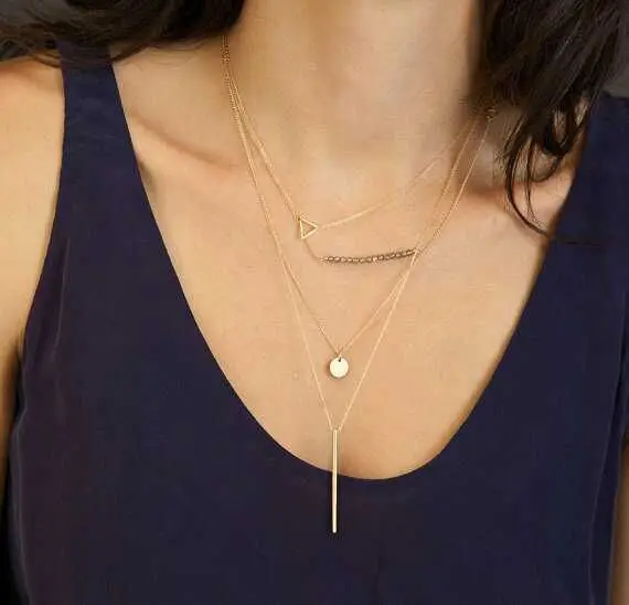 Горячая мода двойной треугольник подвески ожерелья для женщин золот...