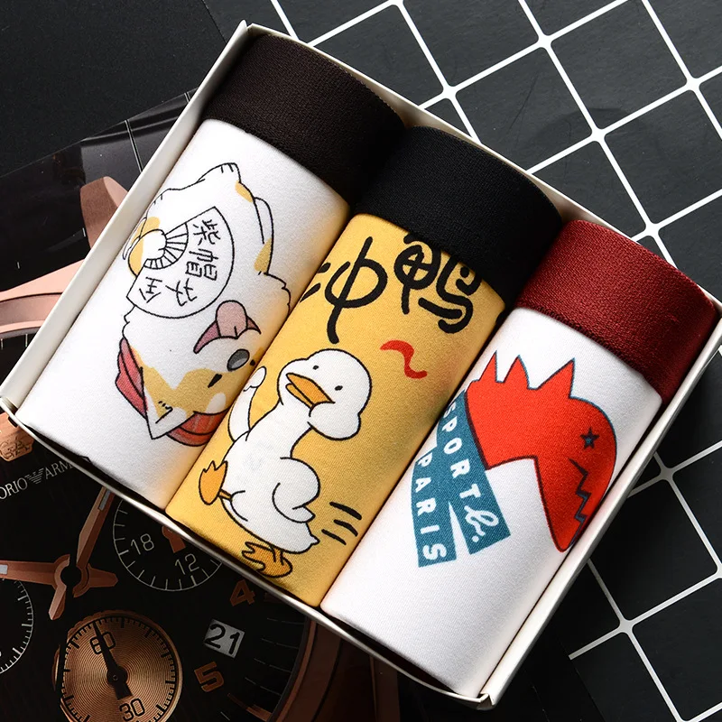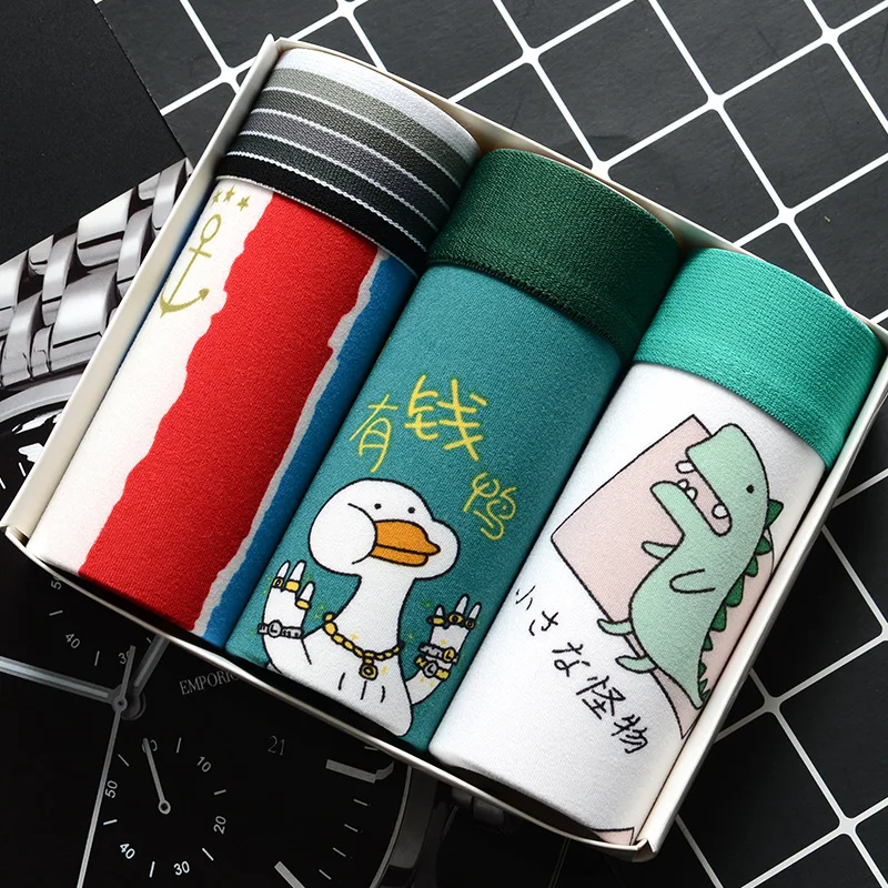 3 шт.комплект, мужские трусы-боксеры с мультяшным принтом