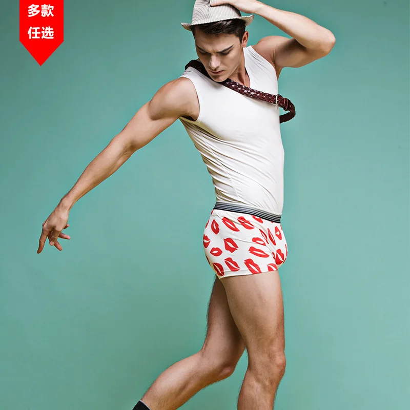 Молочный шелк, мягкие дышащие Модные мужские боксеры Yong с мультяш...