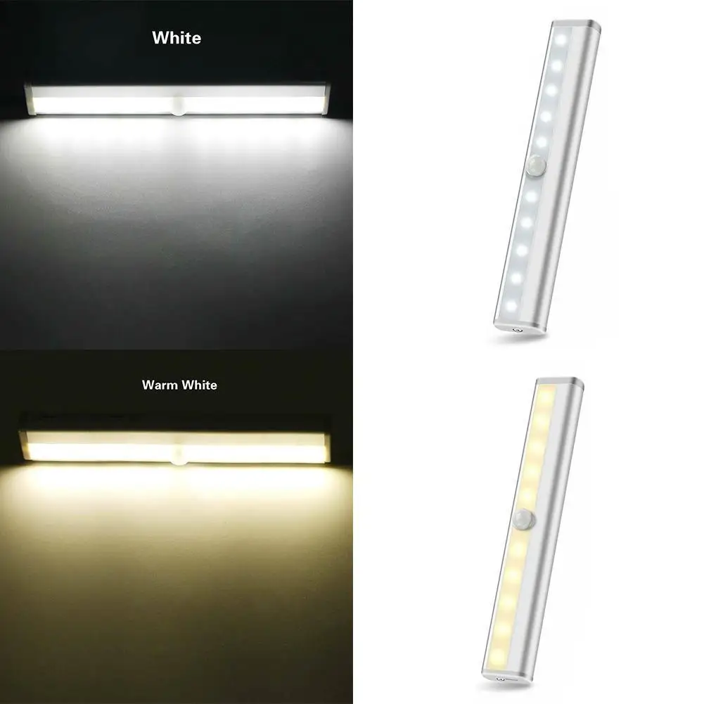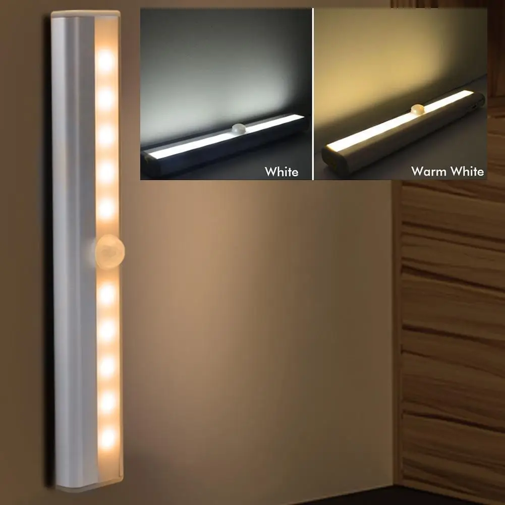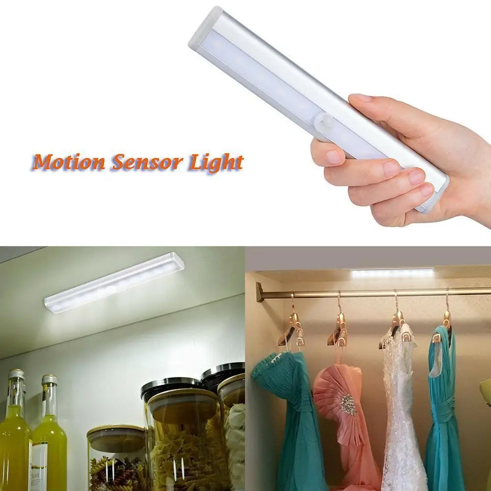 Ночной светильник для шкафа с 10 светодиодный, освещение для чулана, кухни, спальни, настенная лампа с пассивным ИК датчиком, светильник для шкафа