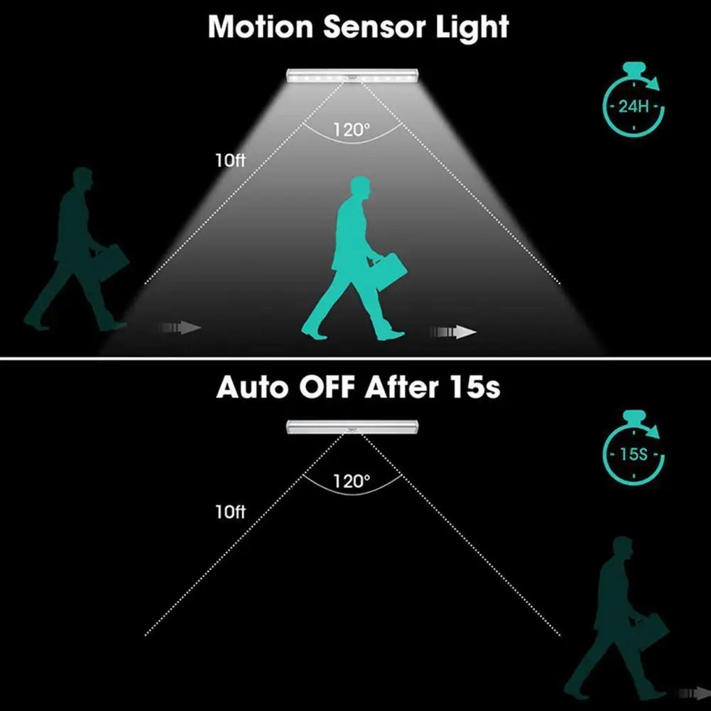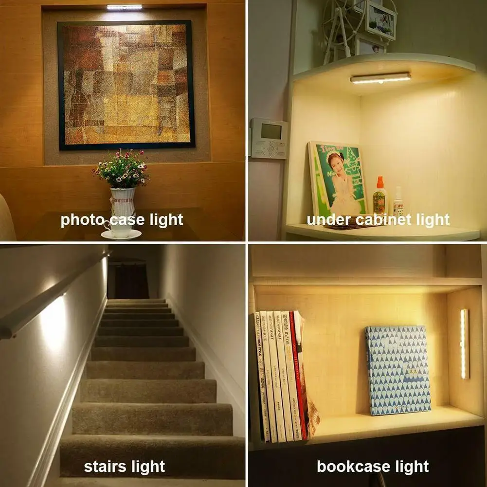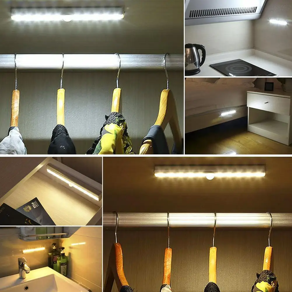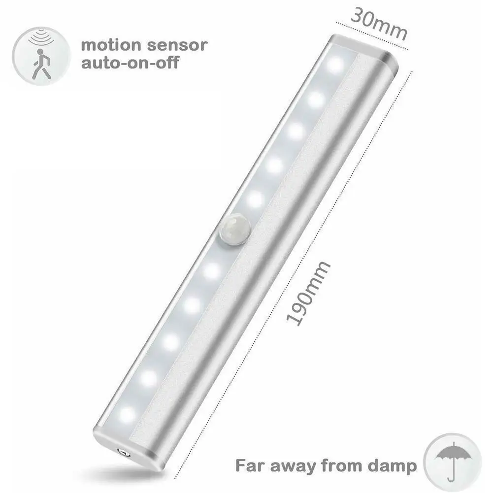 Ночной светильник для шкафа с 10 светодиодный, освещение для чулана, кухни, спальни, настенная лампа с пассивным ИК датчиком, светильник для шкафа