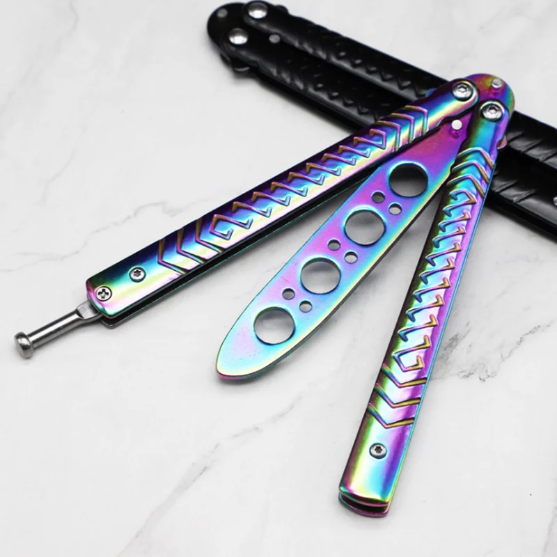 Складной нож-бабочка, тренировочный балисонг-тренировочный нож из нержавеющей стали, портативный, без острых тренировок, переворачивающийся игровой нож для детей