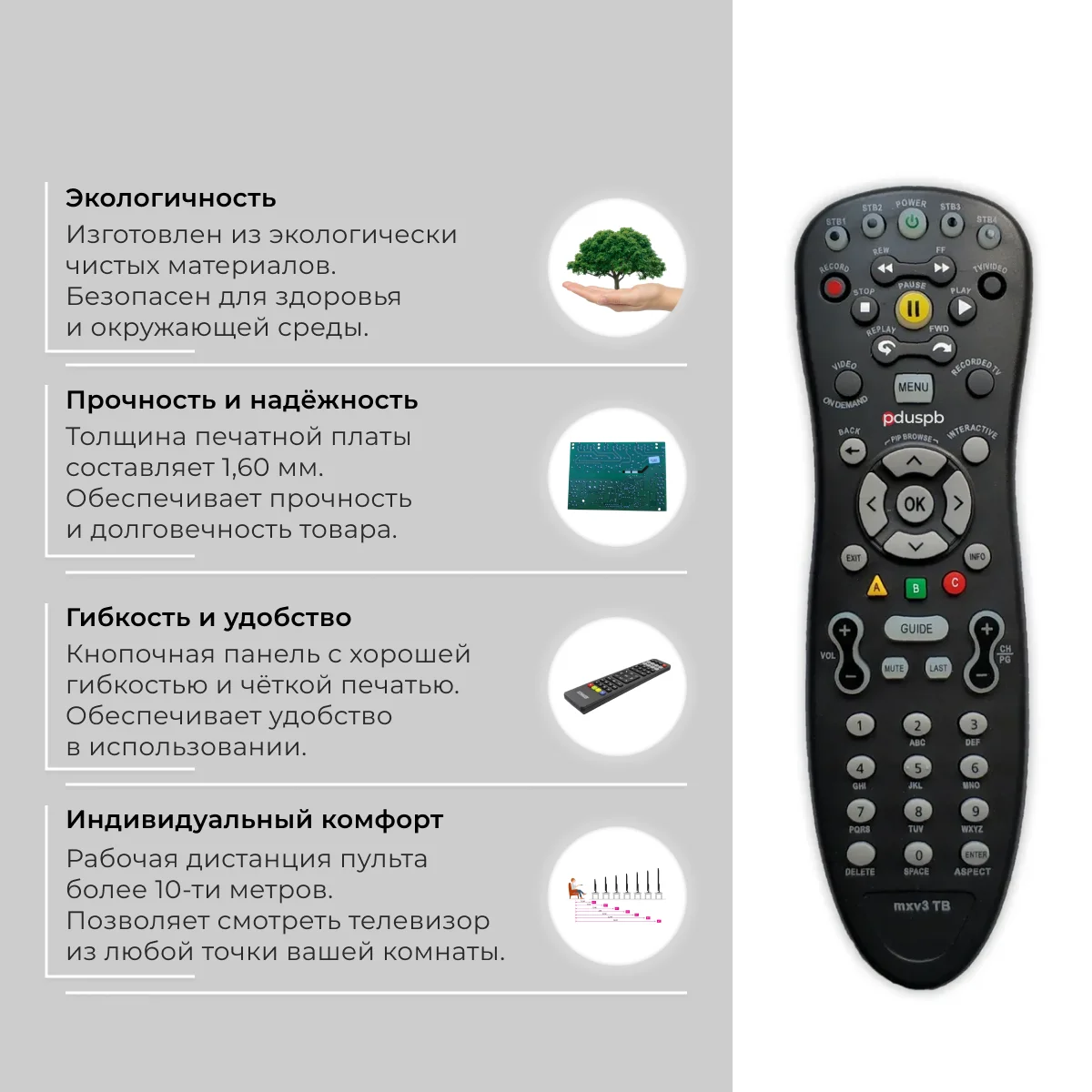 Рабочая дистанция пульта более 10-ти метров, что позволяет смотреть телевизор из любой точки вашей комнаты.