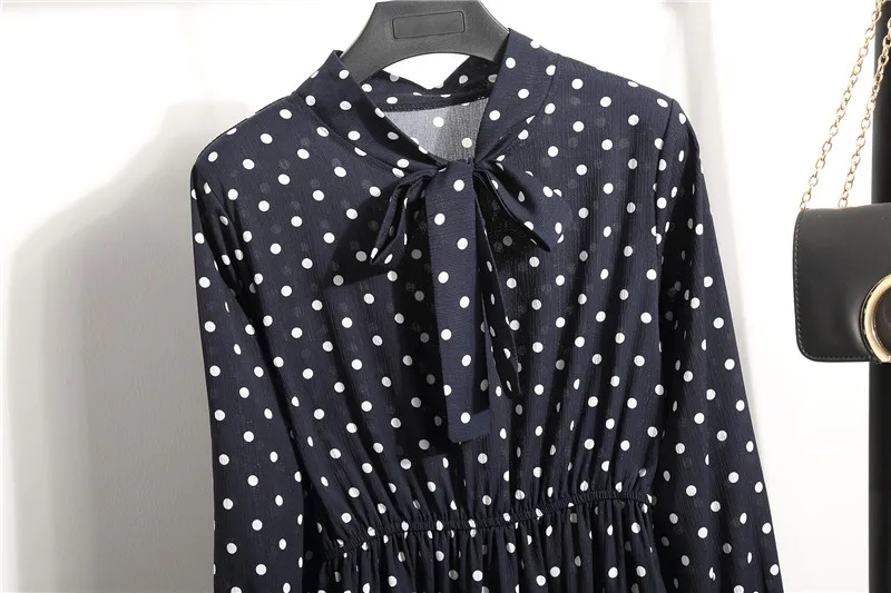 Женское шифоновое платье в горошек, повседневное, с длинным рукавом...