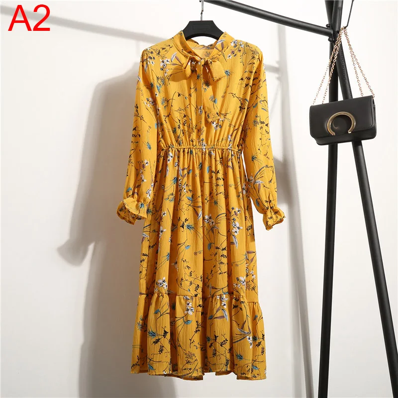 Женское повседневное осеннее платье, женское винтажное шифоновое пл...