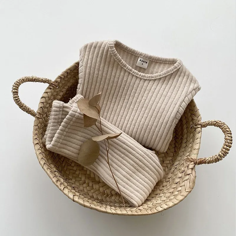 Осенне-зимний комплект одежды для маленьких мальчиков и девочек, свитер в рубчик, рубашки и штаны, костюм, детская одежда, комплект из 2 предметов