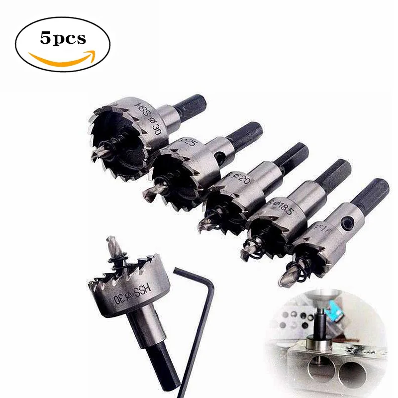 Набор корончатых Сверл из быстрорежущей стали с твердосплавным наконечником, 1618,530 мм, 5 шт.