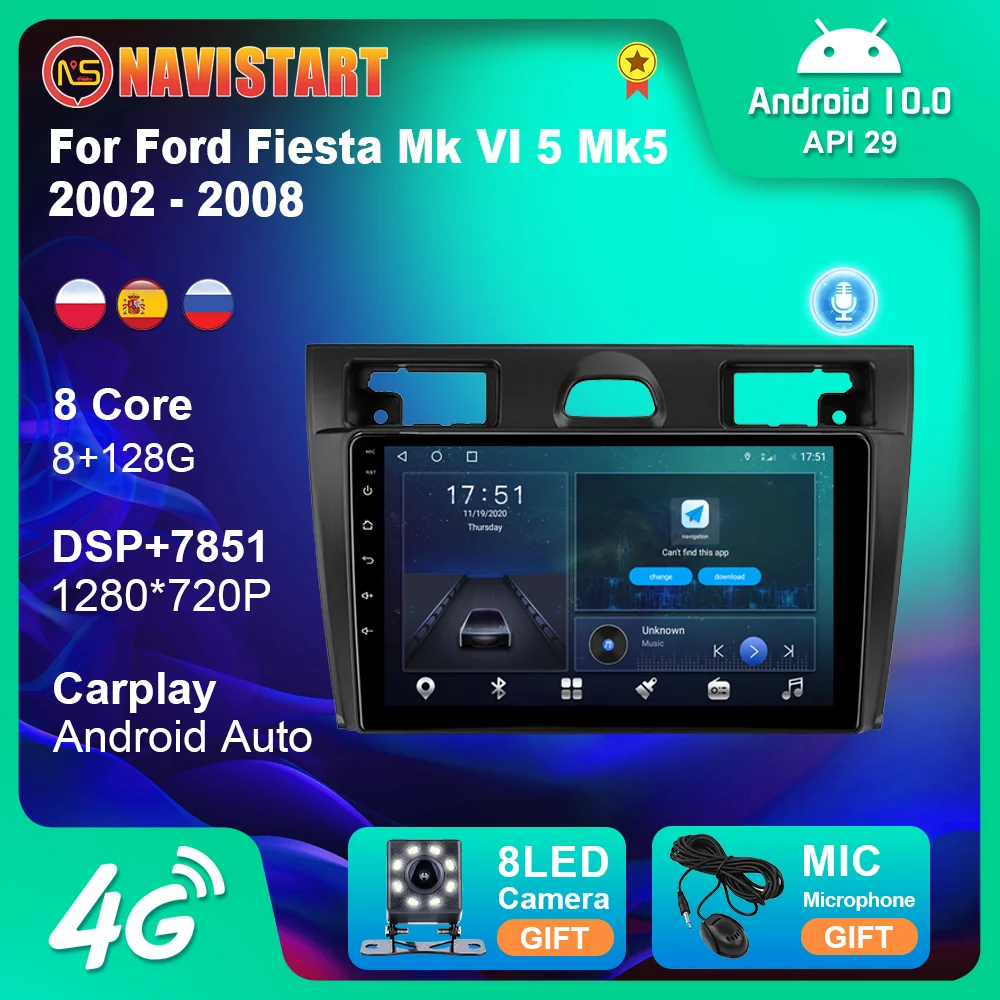 Авторадио для Ford Fiesta Mk VI 5 Mk5 2002-2008 Android Авто Carplay 10 автомобильное радио GPS навигация мультимедийный видеоплеер стерео