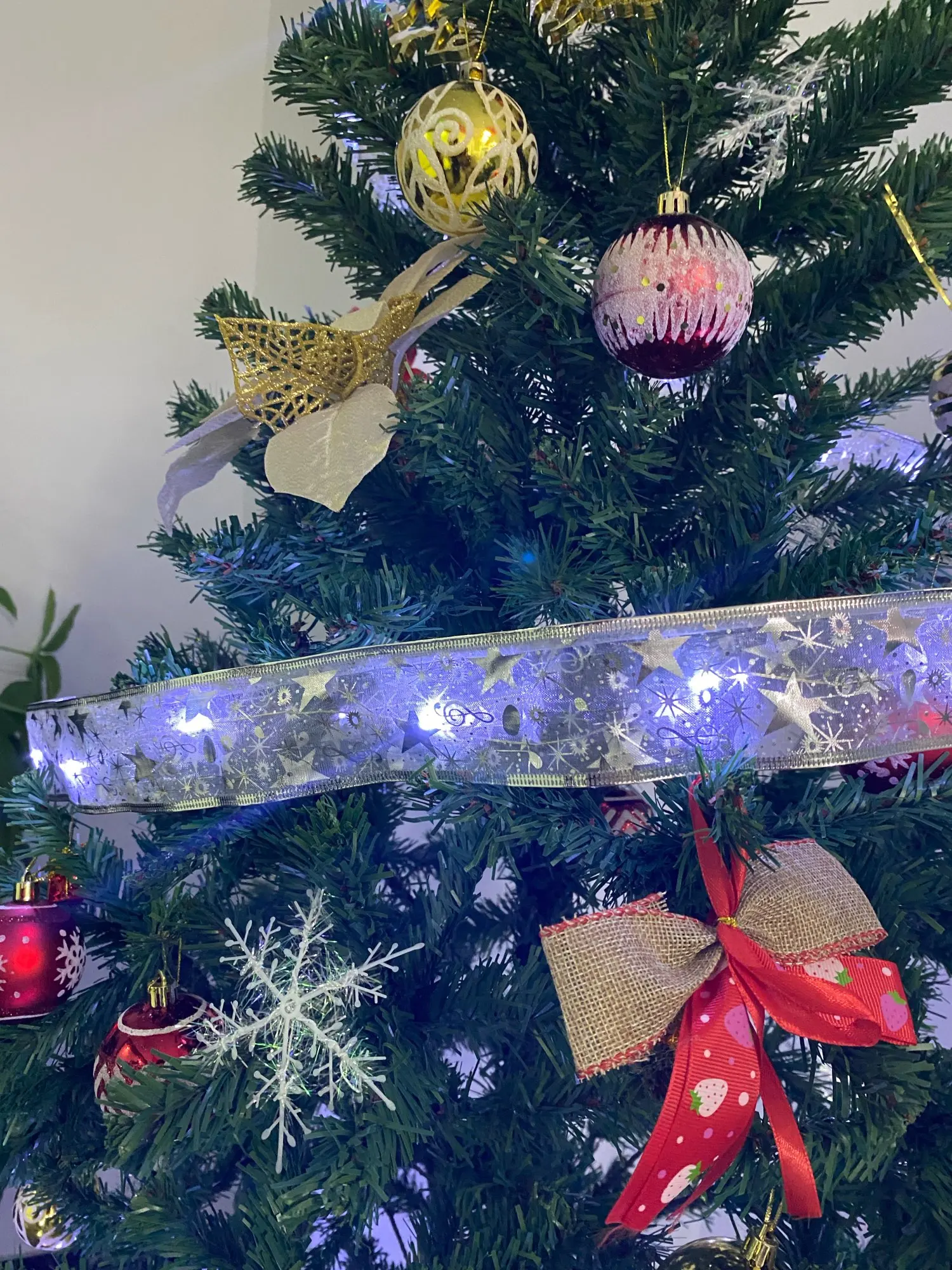 Мне нравится эта лента, она добавляет приятную атмосферу к моей рождественской елке.