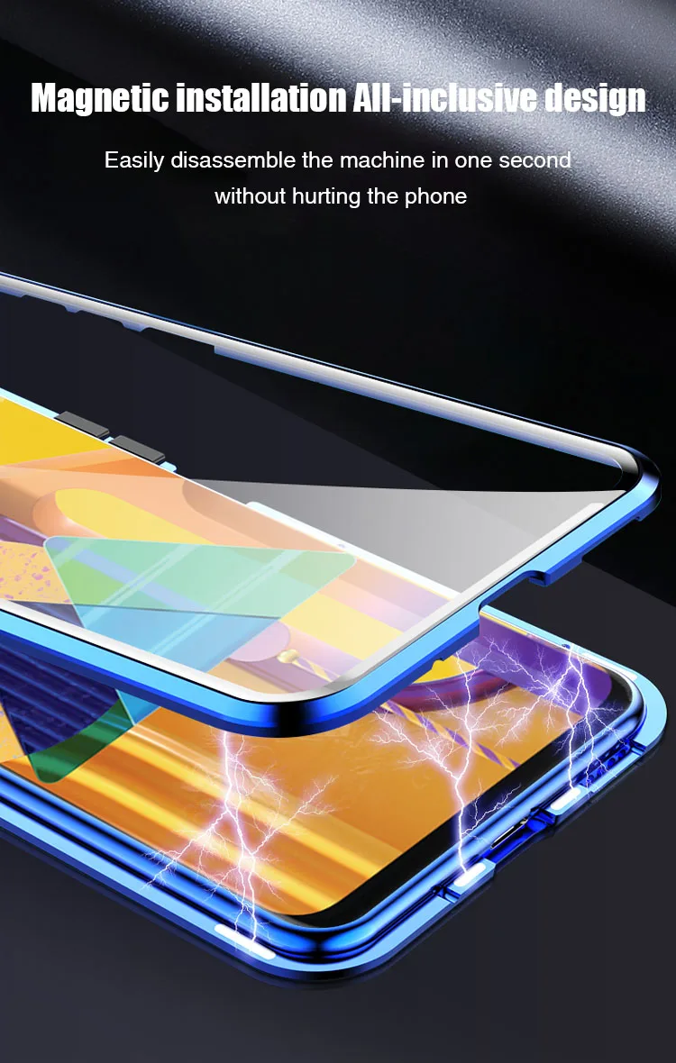 Магнитный металлический двухсторонний стеклянный чехол для Samsung ...