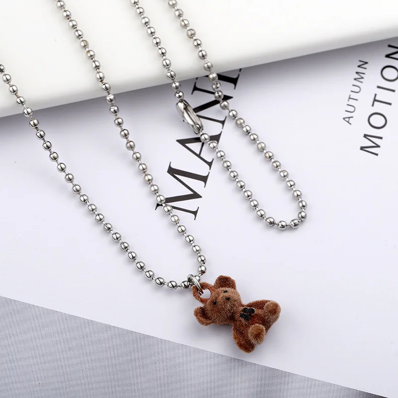 Ожерелье с подвеской в виде мишки для женщин и девушек, модная простая цепочка из бусин из нержавеющей стали, прекрасное женское ожерелье, оптовая продажа, Прямая поставка