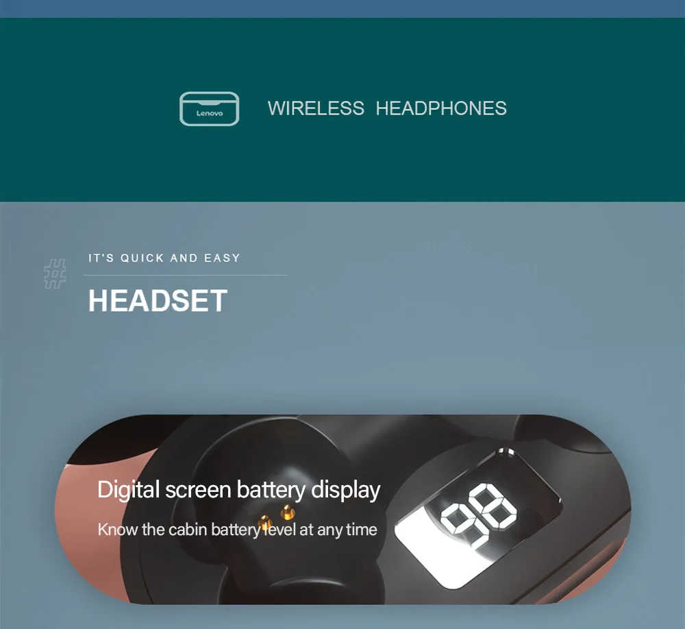 Оригинальные беспроводные Bluetooth наушники Lenovo XT91 TWS BT5.0,...