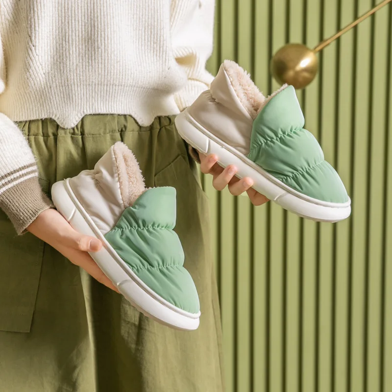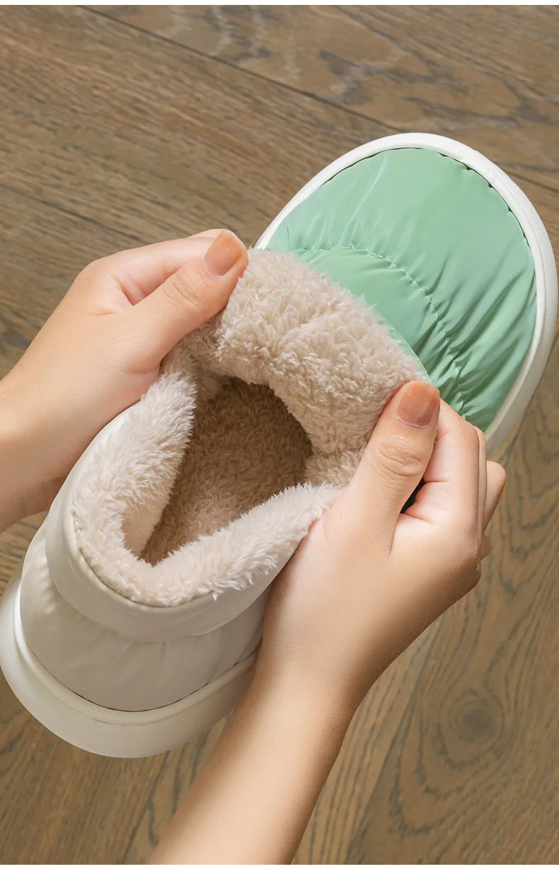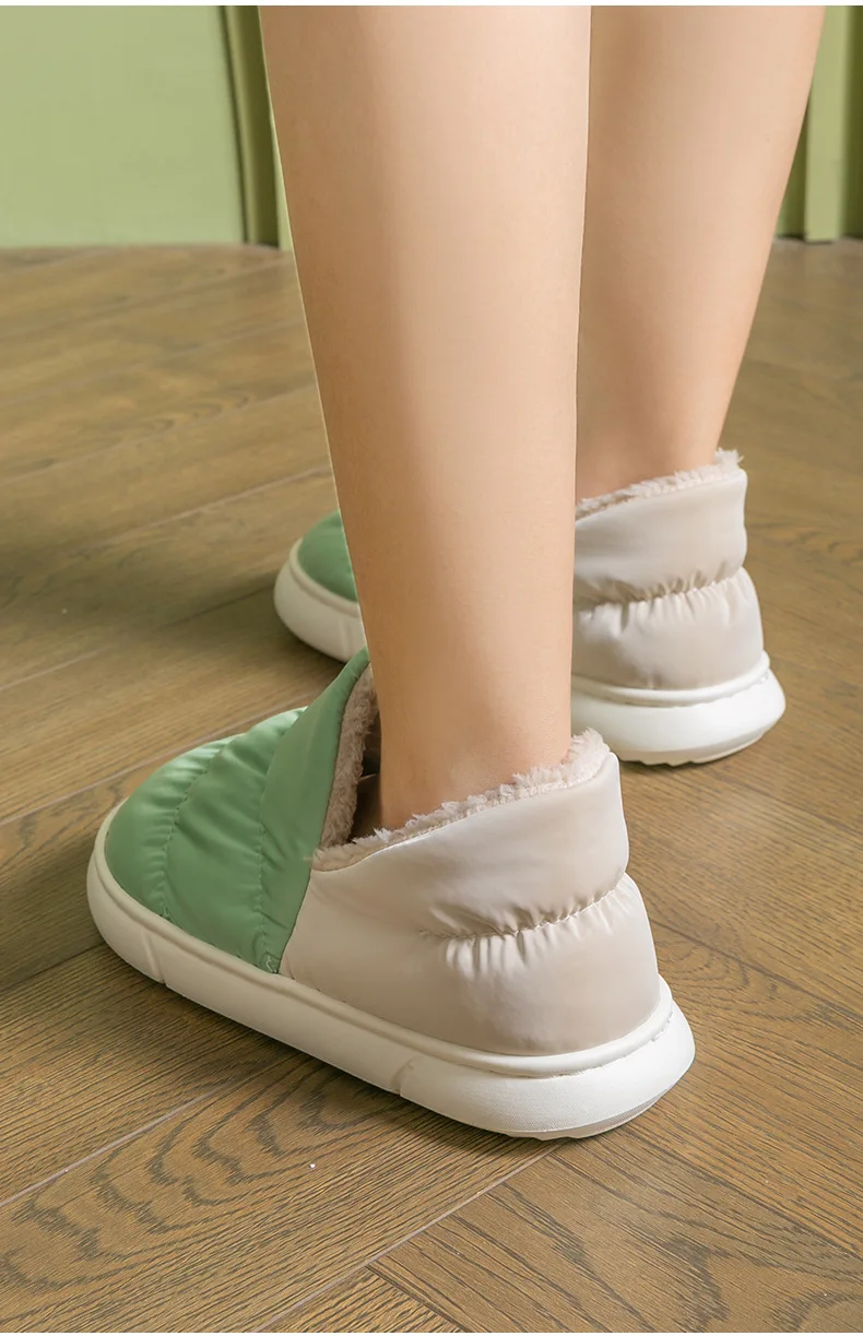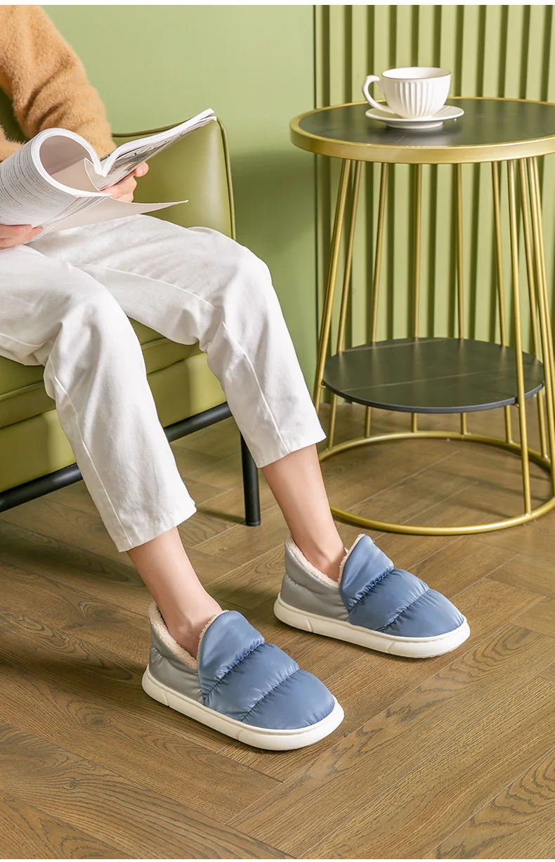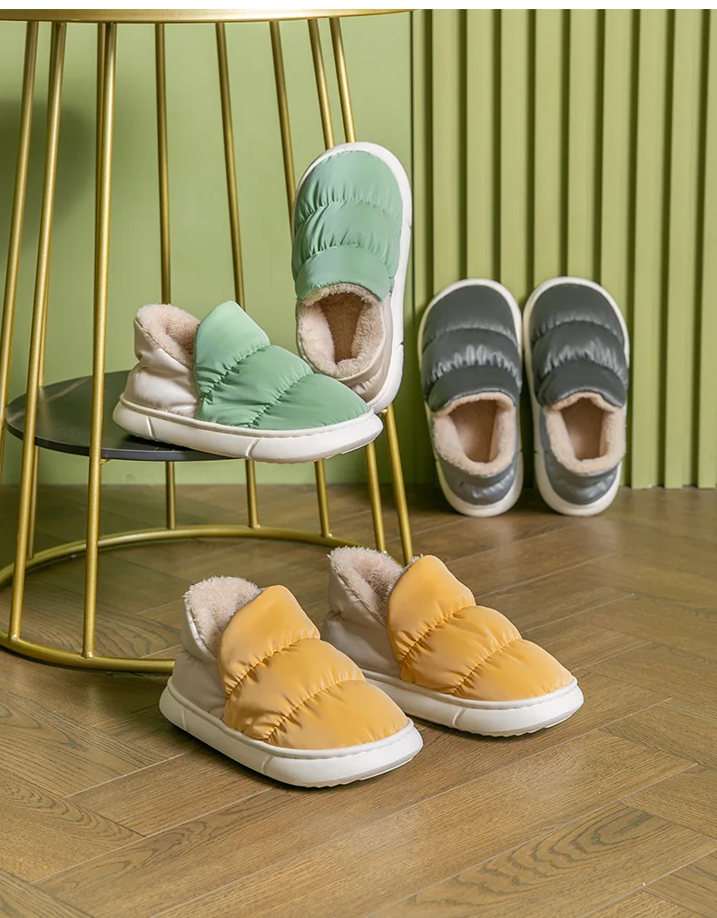 Зимние женские домашние тапочки, пуховая теплая плюшевая Водонепрон...