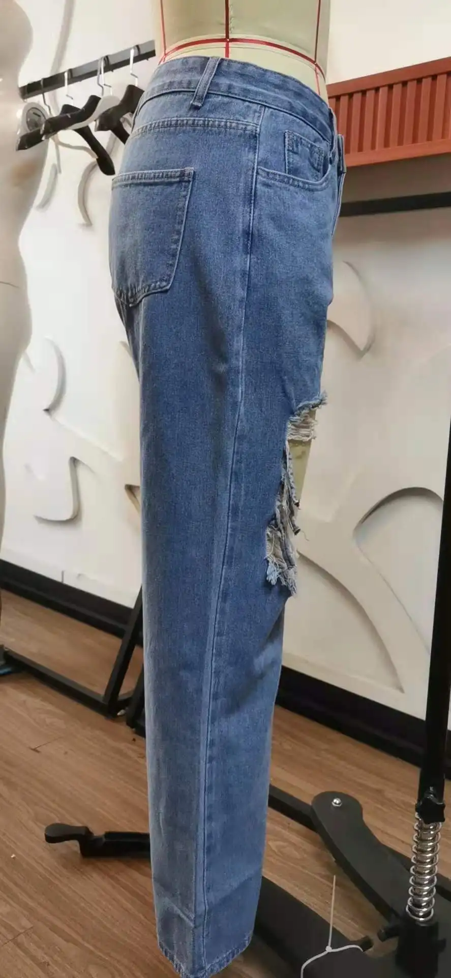 Уличная одежда, женские джинсы Y2K, индивидуальные рваные прямые дж...