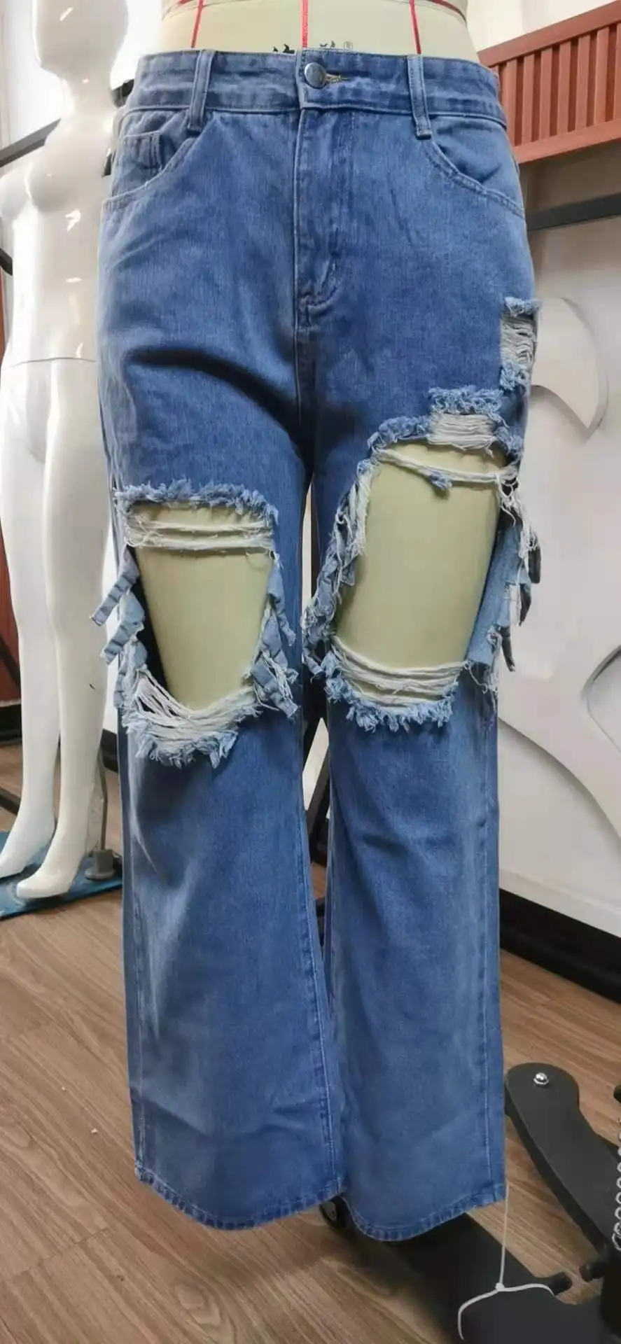 Синие джинсы Брюки Багги отверстия эстетическое широкие брюки прямы...