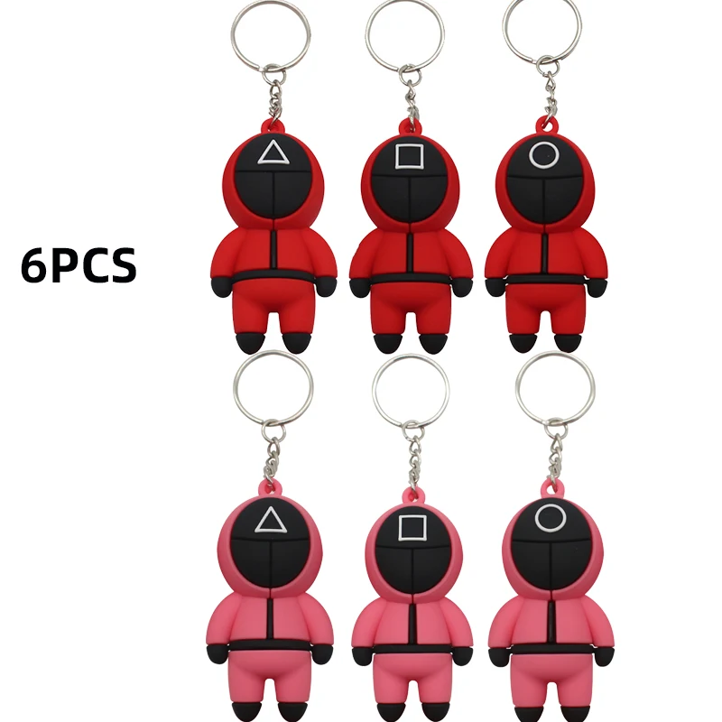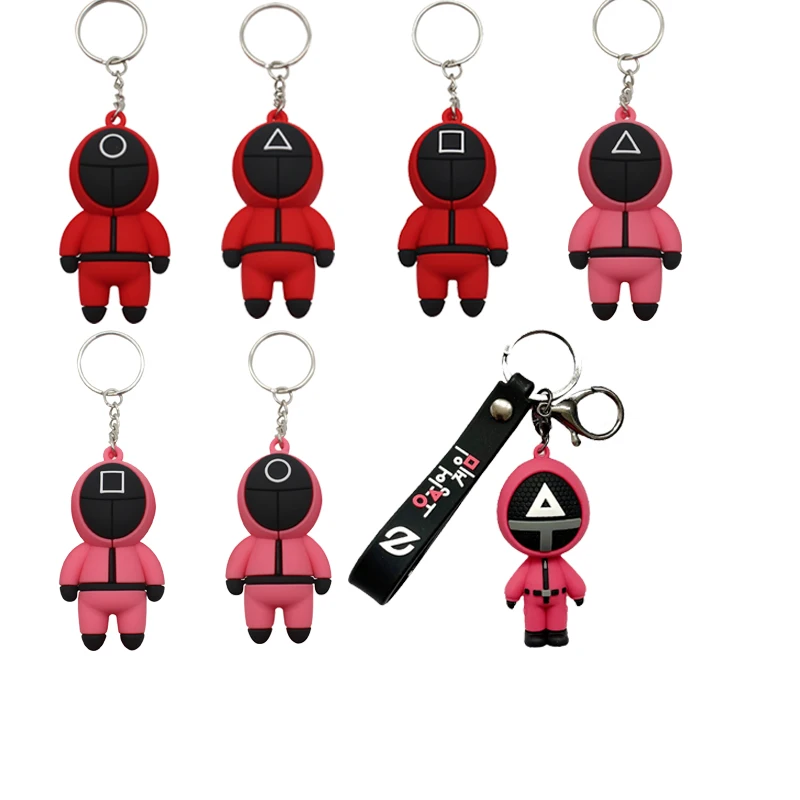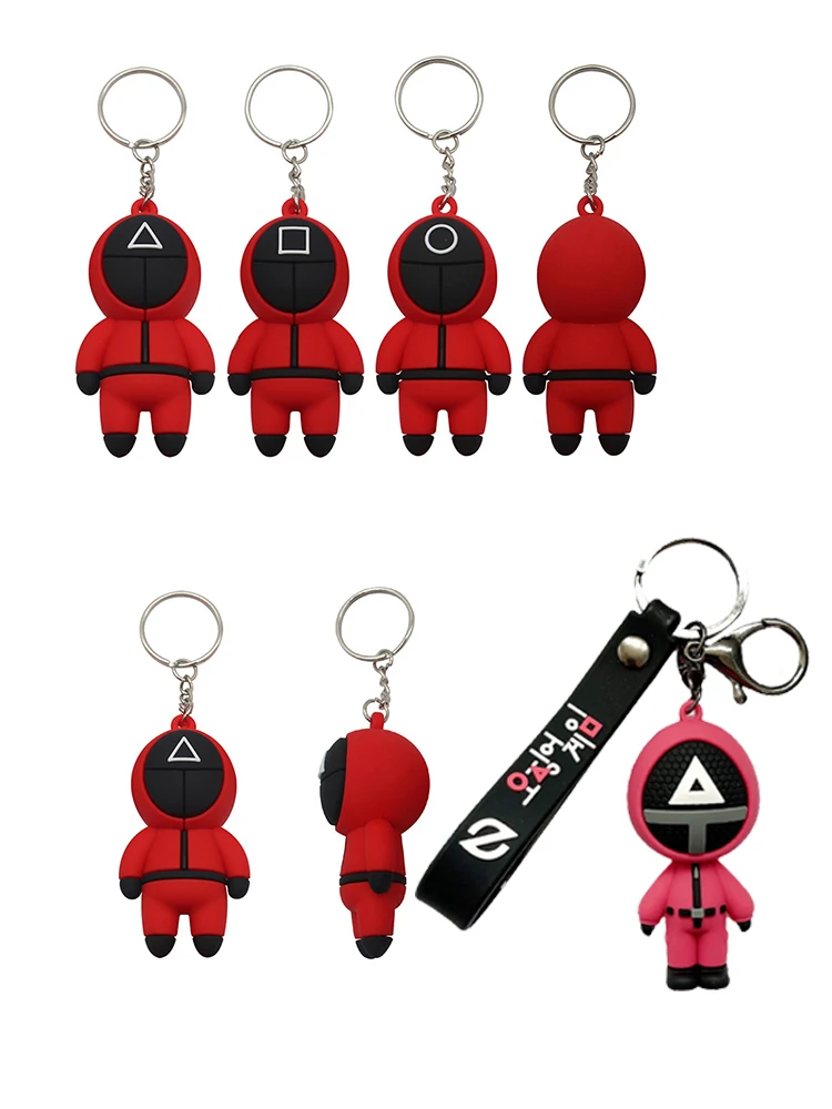 Брелок с подвеской в виде 3d-фигурок из игры кальмар, маски, аксесс...
