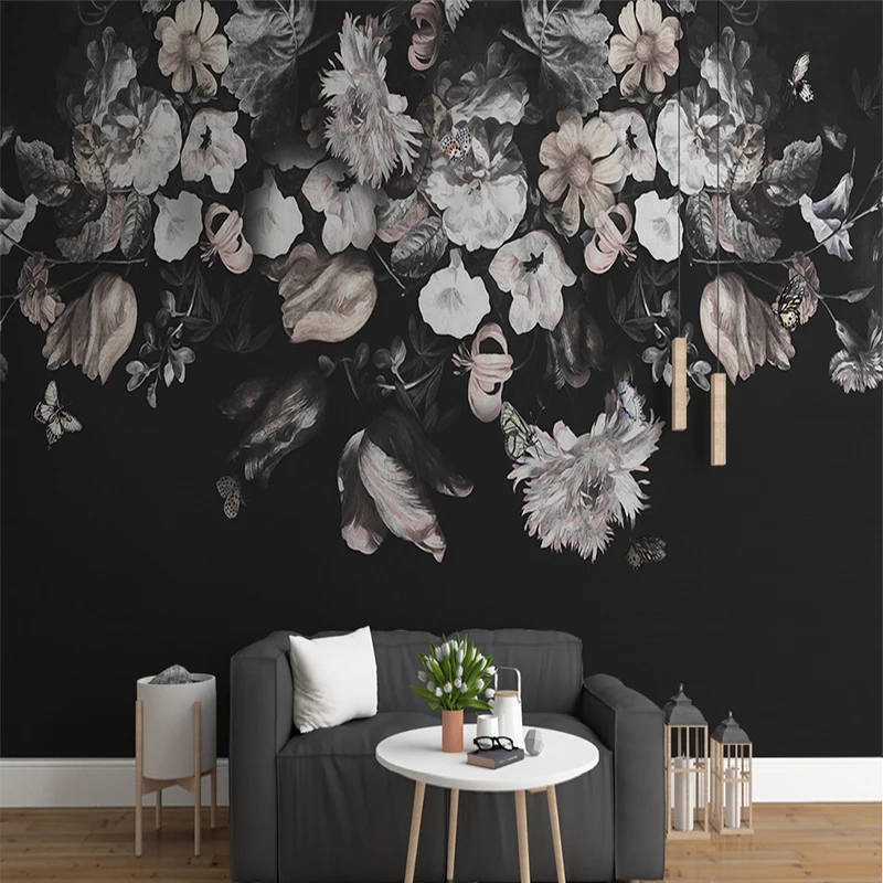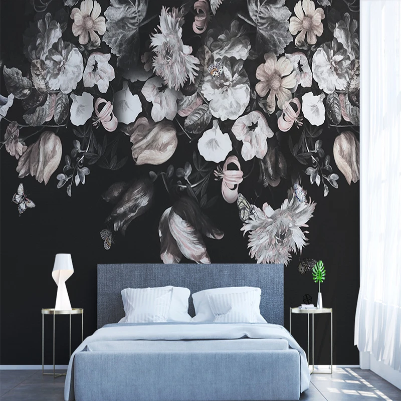 Фотообои на заказ, 3D фотообои, ручная роспись, черный, белый цветок, Настенная роспись, гостиная, домашний декор, роспись, настенная бумага