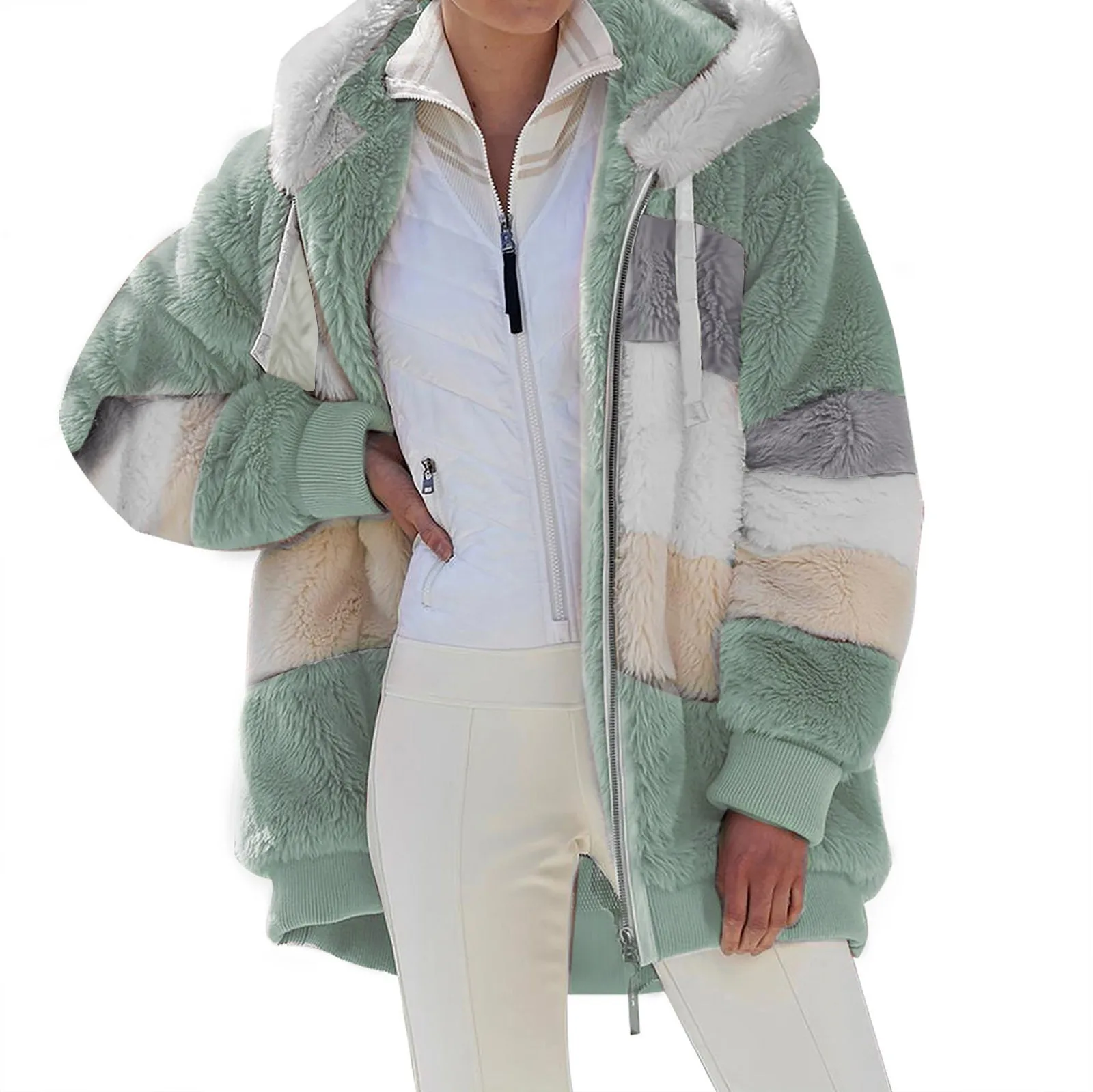 Женский зимний топ с капюшоном, свободная куртка с длинным рукавом, плюшевое пальто на молнии