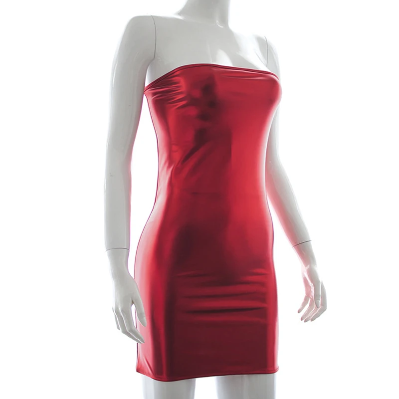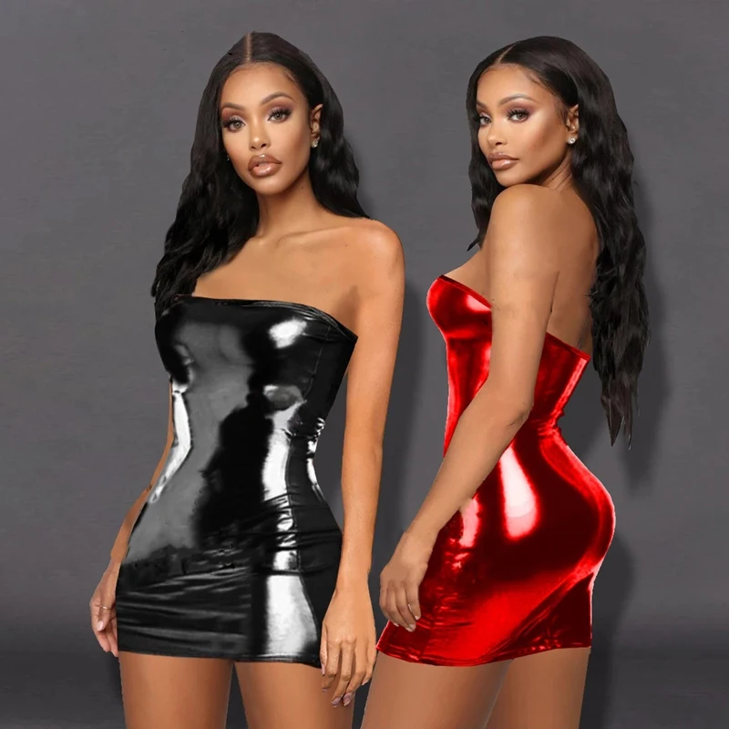 Сексуальное платье с открытыми плечами из искусственной кожи мини ж...