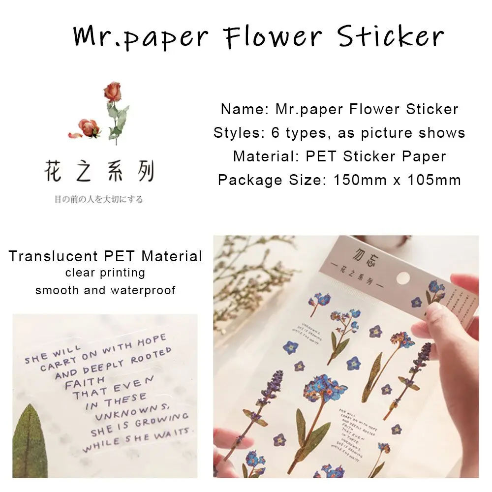 Альбом для дневника, декоративная этикетка для стикеров из ПЭТ материала с хорошей вязкостью, Канцтовары, наклейка, Цветочная наклейка