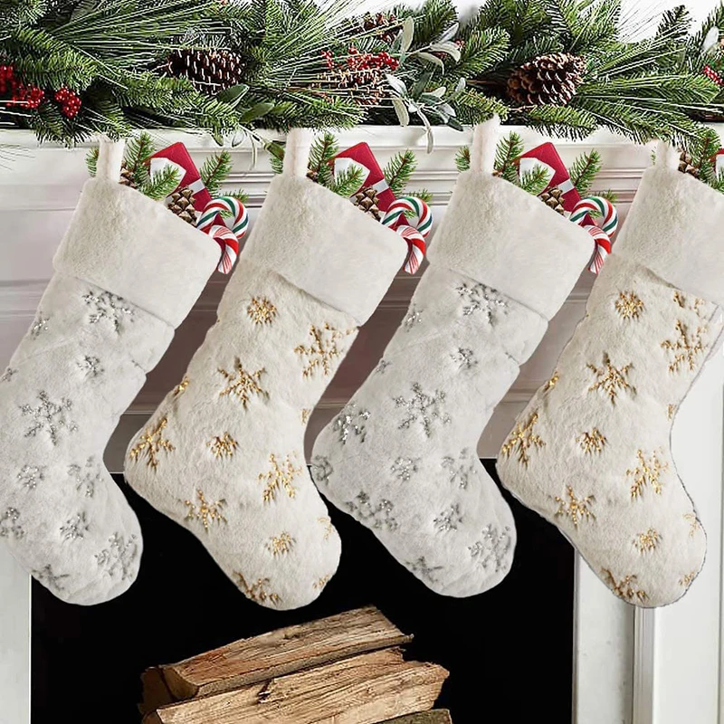 Рождественские чулки, белые Золотые снежинки, Рождественское украше...