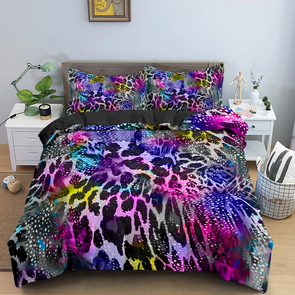 Пододеяльник с цветными листьями, Комплект постельного белья 3D при...