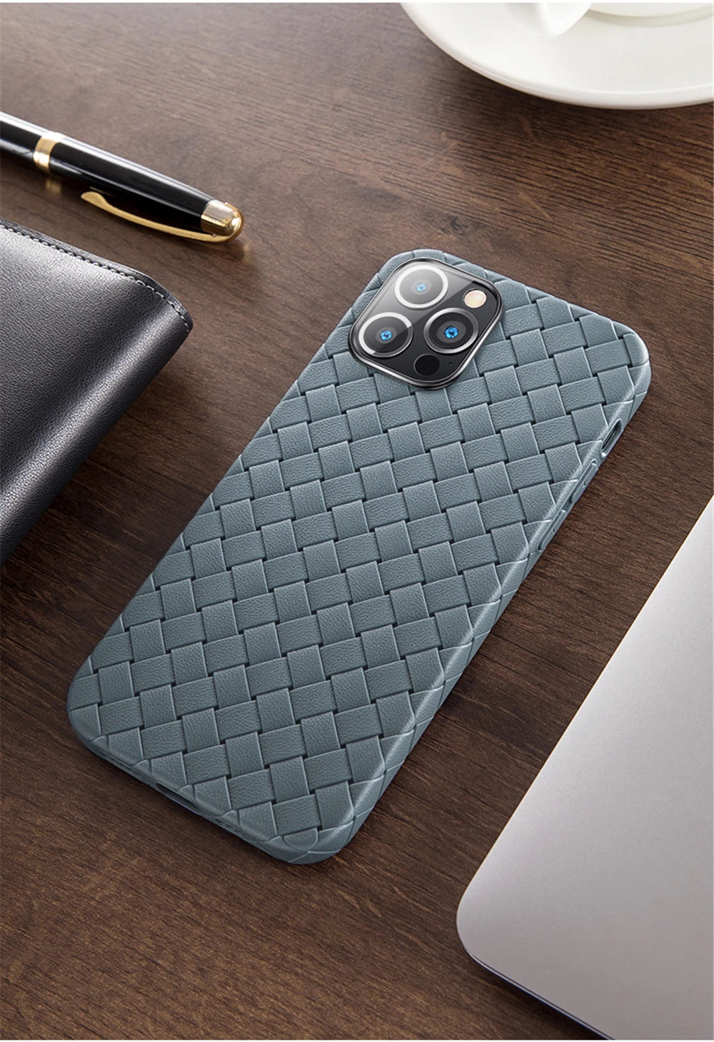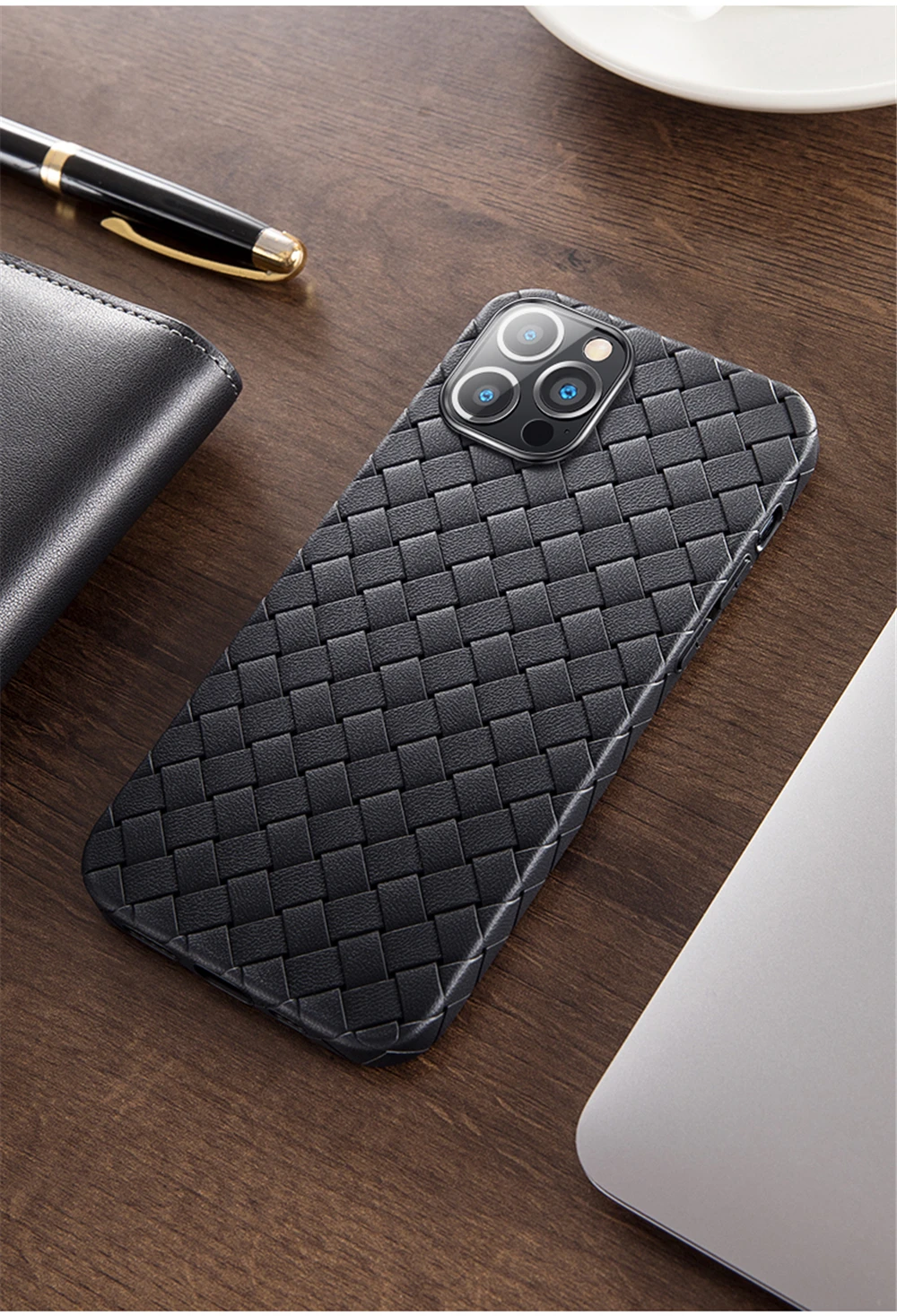 Features1:Ultra thin Leather Grid Weaving Phone Case