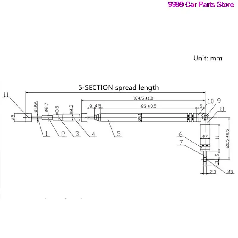 Название продукта: телескопическая антенна;Секции: 5 секцийНерастягивающийся Размер: 105 мм;Полная длина: 354 ммДиаметр отверстия: 3 ммМатериал: нержавеющая сталь, латунь; Цвет: серебристый4 секции телескопическая антенна.В основном используется для телевидения, радио, электрической игрушки, дистанционного управления, ламп и фонарей, VCD и других специальных конфигураций антенна связи и железа и инструменты антенны и другие продукты электроники.Отличная замена поврежденной телевизионной антенны или fm-радио антенны.
