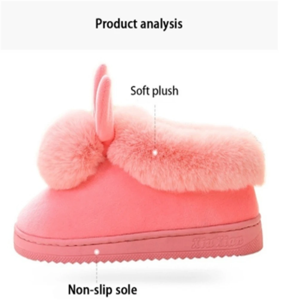 Тапки женские с меховыми кроличьими ушками, плюшевые бархатные домашние тапочки для снега, теплая мягкая удобная зимняя обувь