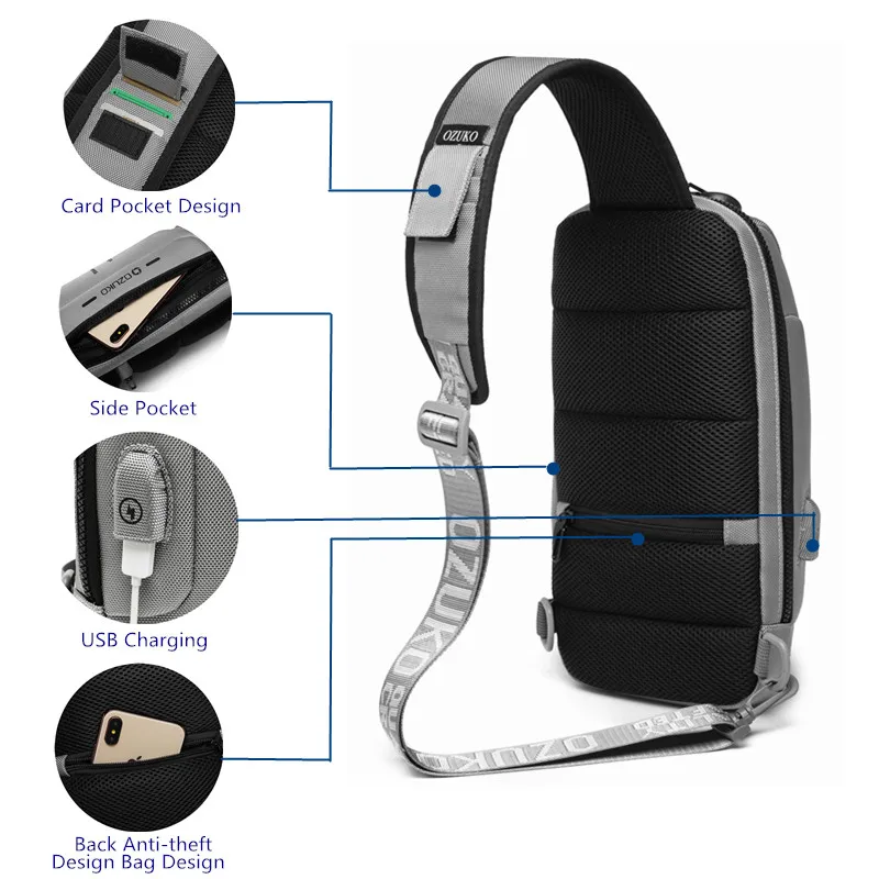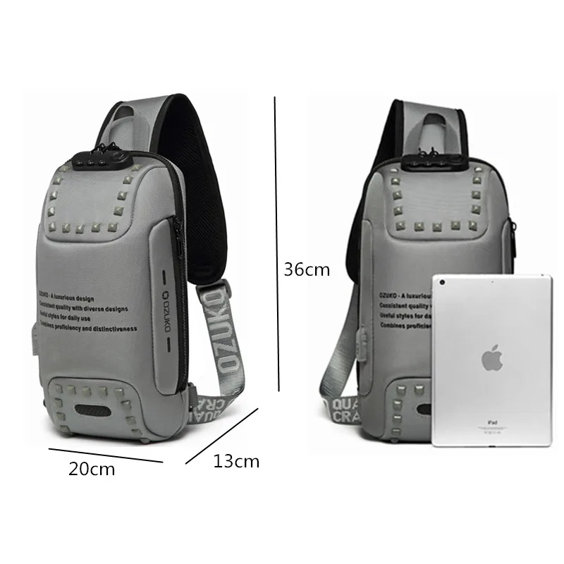 Item Name1OZUKO Waterproof Chest Bag Anti Theft Lock Design