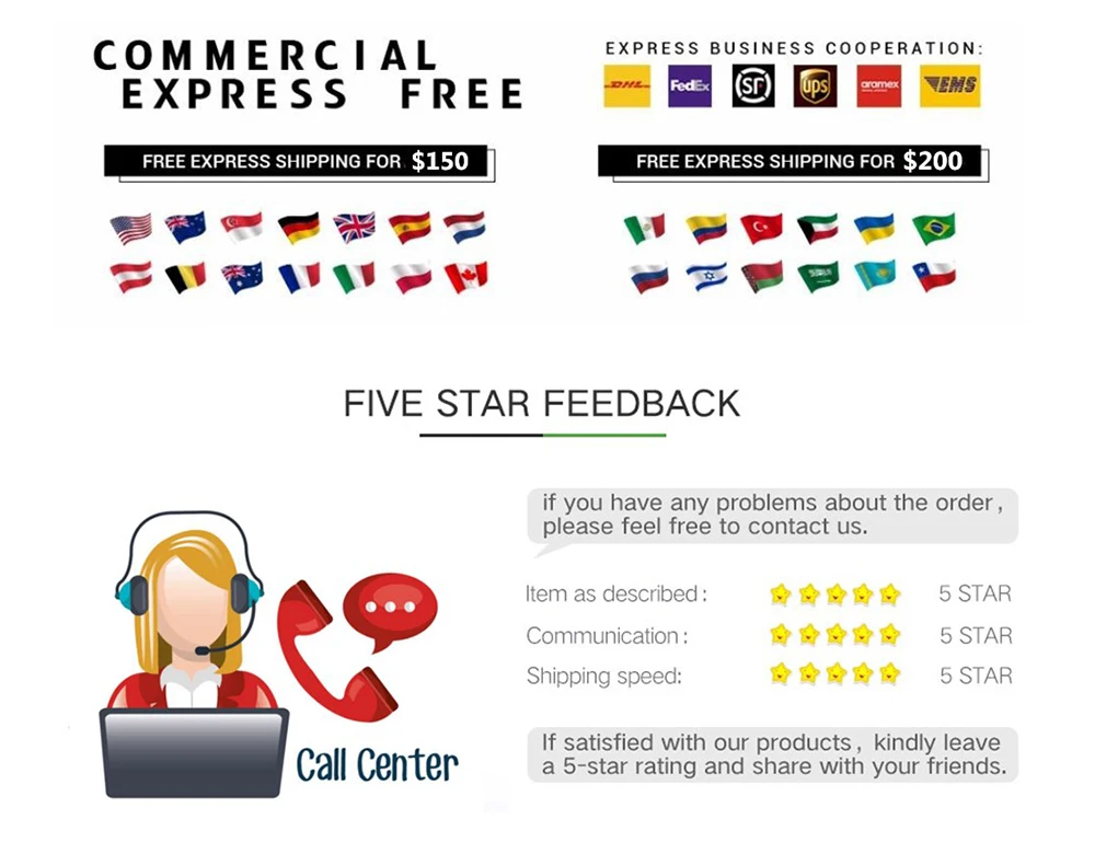 Пожалуйста, не:Ищем оптовых/прямых клиентов для сотрудничестваМы абсолютно принимаем дистрибьютора, мы рады быть деловыми партнерами, пожалуйста, оставьте нам сообщение «оптовая продажа» или «Прямая поставка» по указанным ниже информационным каналам1) покупатели из России обязательно оставят ваше полное имя2) Кредитная гарантия, что все фотографии в натуральной форме, пожалуйста, будьте уверены, чтобы купить.3) Если у вас есть какие-либо проблемы при получении посылка, пожалуйста, сначала свяжитесь с нами, чтобы решить проблему, не оспаривать напрямую или оставлять негативные отзывы. Мы обещаем дать вам удовлетворительный ответ. Большое спасибо за понимание!4) различия в цвете могут быть вызваны некоторыми другими причинами, такими как отражение цвета на мониторе, освещение, фон и т. д. Однако, если вы считаете, что полученный товар не того цвета, пожалуйста, свяжитесь с нами, чтобы узнать, возможен ли возврат или возврат средств.5) Все размеры измеряются вручную, могут быть отклонения на 2-3 см.6) вы также можете смешать все товары в моем магазине вместе, чтобы сэкономить вам общую стоимость доставки.1. 1 дюйм = 2,54 см; 1 см = 0,39 дюйма;2. Ручное измерение, погрешность около 2 см, чтобы получить товар. Пожалуйста, поймите!3. Разный дисплей, цвет будет отличаться. Спасибо!