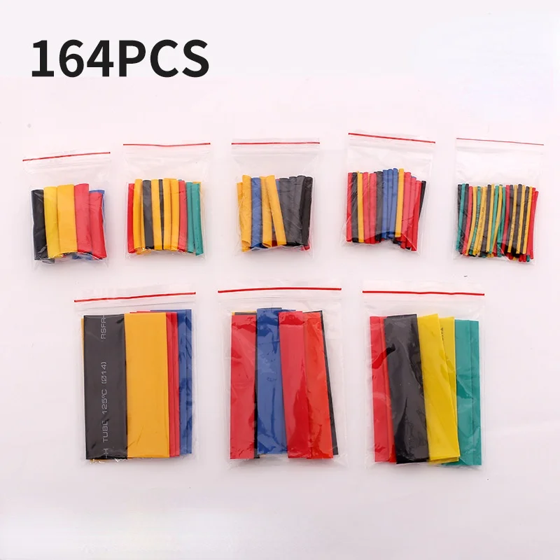164 шт.упак. термостойкая трубка, комплект для упаковки термоусадочной трубки, трубки разных размеров для изоляции проводов и кабелей