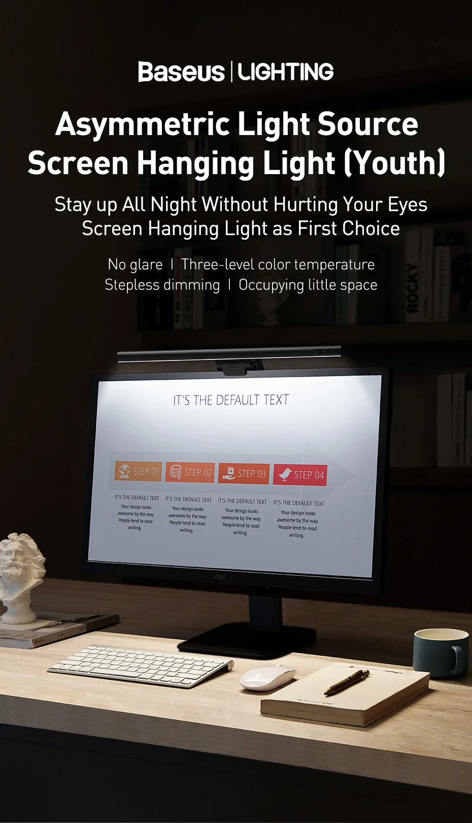Использование обычных настольных ламп при использовании компьютера может легко вызвать блики на экране. Подвесная лампа Baseus использует ассиметричный светильник, чтобы осветить сверху вниз, что не вызовет отражения экрана и сделает лучшую работу.