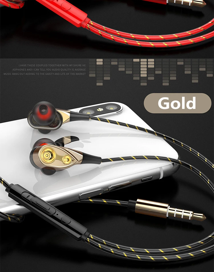 Проводные наушники-вкладыши 3,5 мм, двухдинамичный четырехъядерный динамик с микрофоном и регулятором громкости, музыкальная гарнитура, басовые наушники