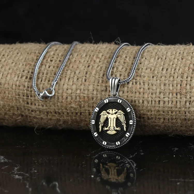 Ожерелье с настоящей искусственной серебряной цепочкой, Орлом и пер...