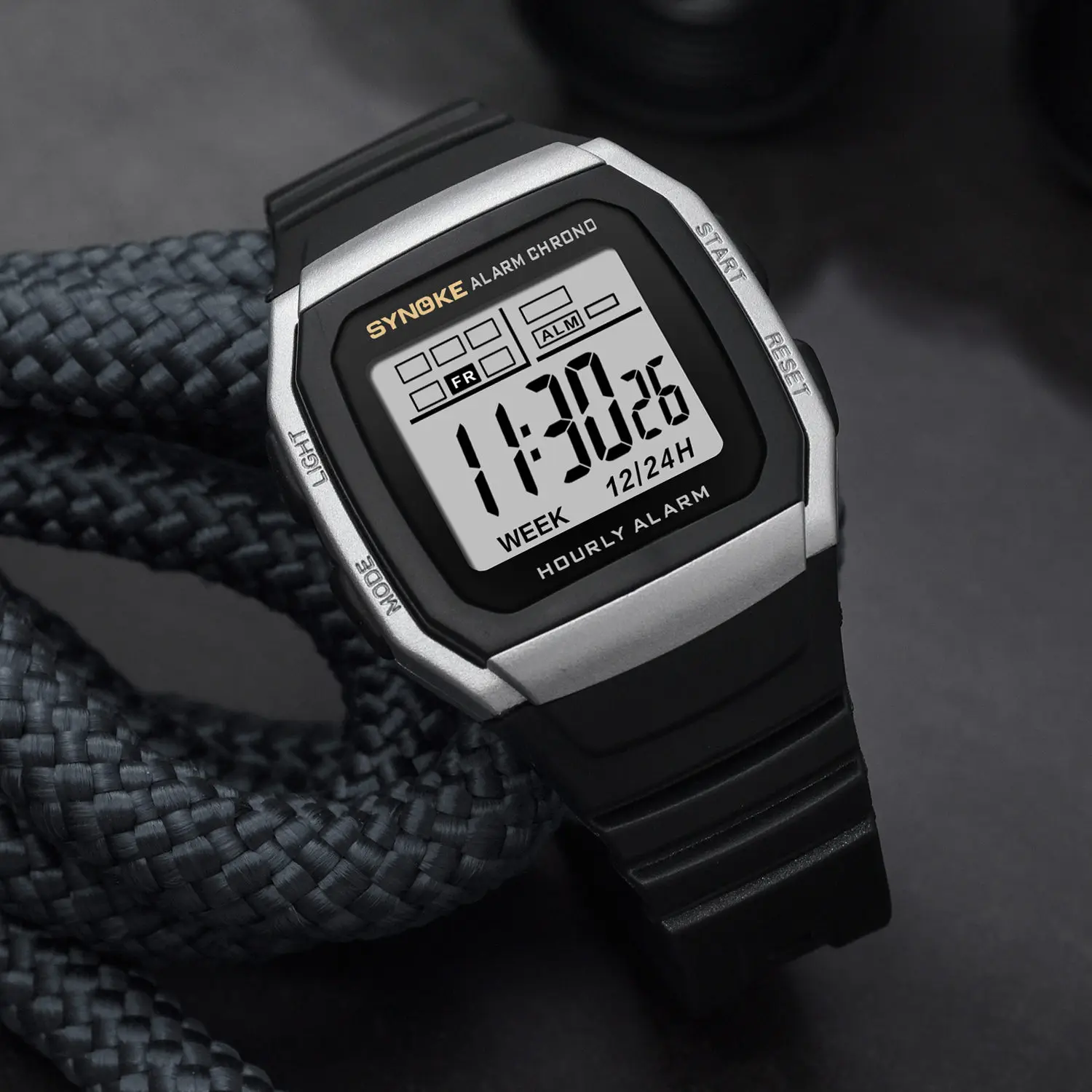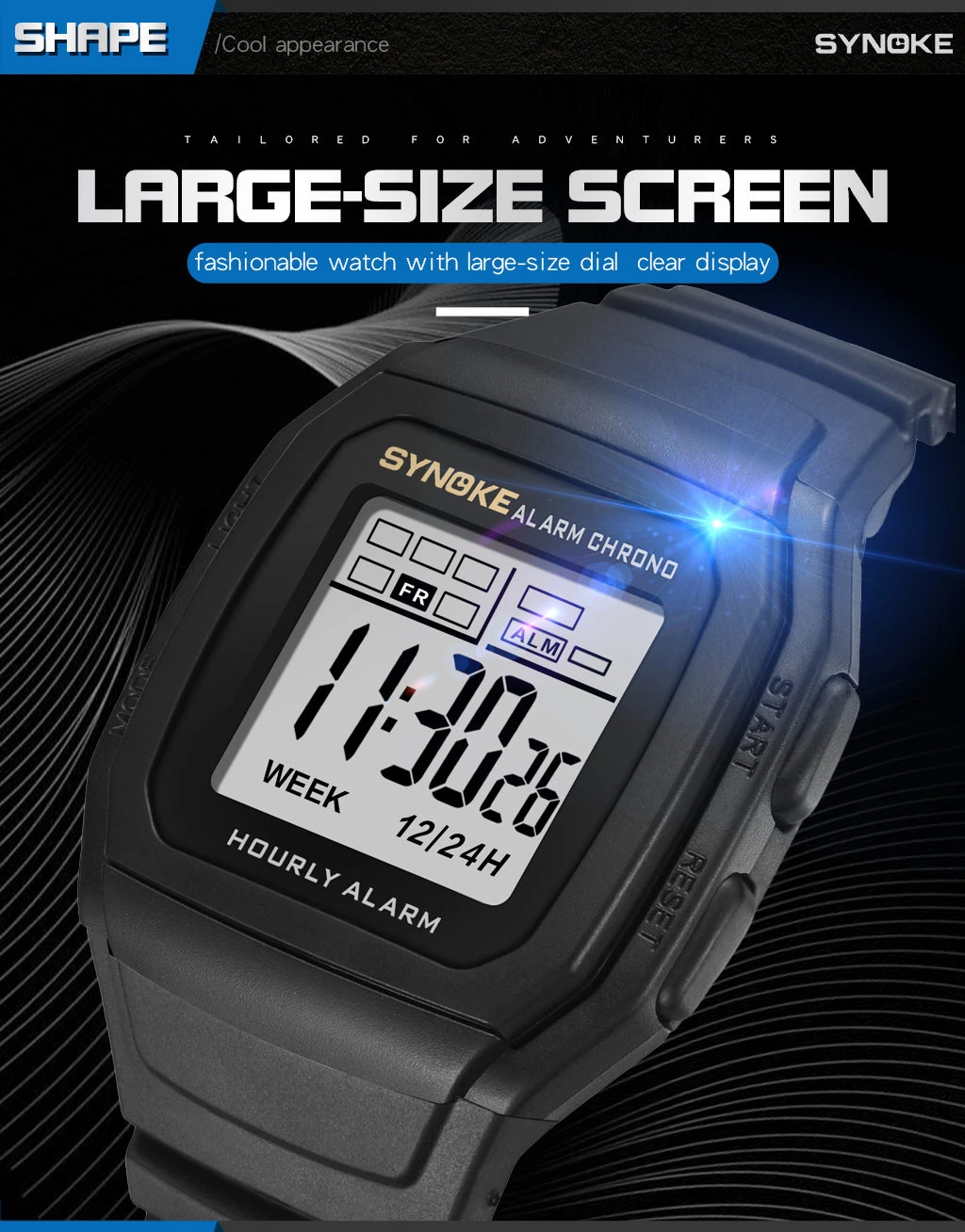 SYNOKE Мужские Цифровые спортивные часы светодиодный дисплей таймер 12/24 часов цифровые электронные наручные часы водонепроницаемые часы Reloj Hombre