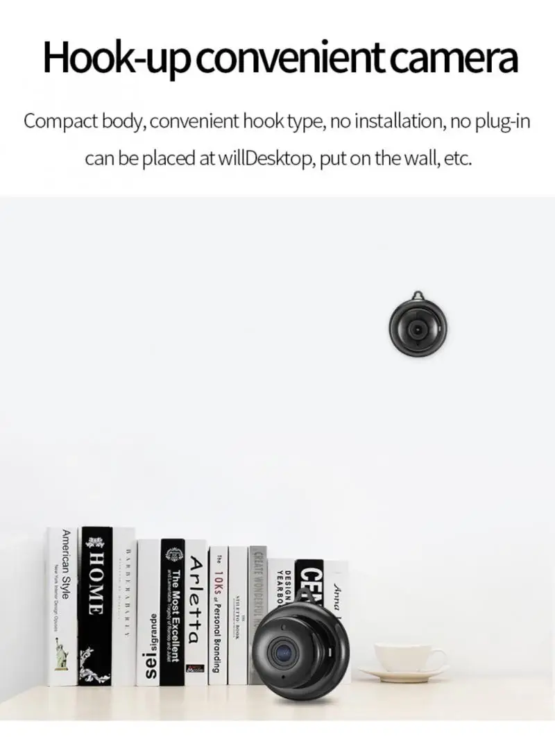 -ИК Ночное Видение и сигнализация обнаружения движения: Эта мини-камера поддерживает несветящееся ночное видение с ИК-подсветкой, может записывать четкое видео даже в темной среде. И после обнаружения движения, он отправит вам уведомления, чтобы не пропустить важные вещи.