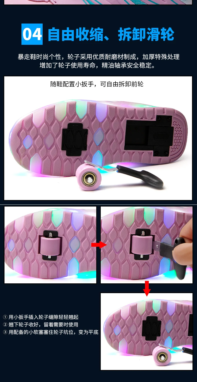 Кроссовки роликовые для мальчиков и девочек, светодиодные, на одно ...