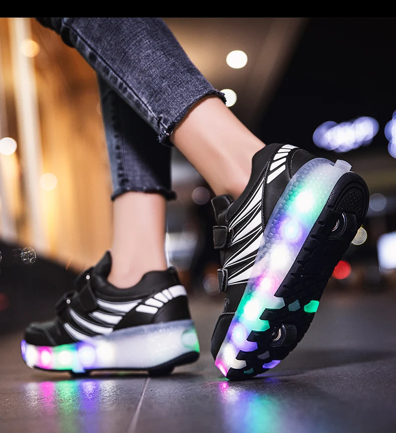 Светящиеся кроссовки с двумя колесиками, черные фрижевые кроссовки ...